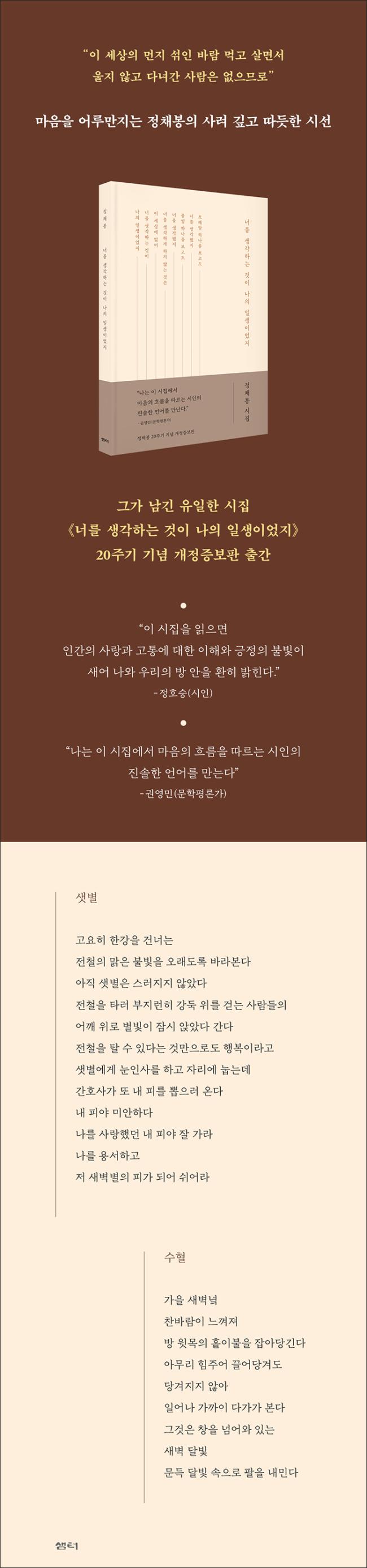 ÀúÀÚ : Á¤Ã¤ºÀ 1946³â ¼øÃµÀÇ ¹Ù´å°¡ ¸¶À»¿¡¼ ž´Ù. 1973³â µ¿¾ÆÀϺ¸ ½ÅÃá¹®¿¹ µ¿È ºÎ¹®¿¡ ¡´²É´Ù¹ß¡µ·Î ´ç¼±ÀÇ ¿µ¿¹¸¦ ¾È°í µî´ÜÇß´Ù. ±× ÈÄ ´ëÇѹα¹¹®Çлó(1983), »õ½Ï¹®È»ó(1986), Çѱ¹ºÒ±³¾Æµ¿¹®Çлó(1989), µ¿±¹¹®Çлó(1991), ¼¼Á¾¾Æµ¿¹®Çлó(1992), ¼Òõ¾Æµ¿¹®Çлó(2000)À» ¼ö»óÇß´Ù. ¡®¼ºÀÎ µ¿È¡¯¶ó´Â »õ·Î¿î ¹®ÇÐ ¿ë¾î¸¦ ¸¸µé¾î ³ÂÀ¸¸ç Çѱ¹ µ¿È ÀÛ°¡·Î¼´Â óÀ½À¸·Î µ¿ÈÁý ¡¶¹°¿¡¼ ³ª¿Â »õ¡·°¡ µ¶ÀÏ¿¡¼, ¡¶¿À¼¼¾Ï¡·Àº ÇÁ¶û½º¿¡¼ ¹ø¿ª Ãâ°£µÇ¾ú´Ù. ¸¶ÇؼÛ, ÀÌ¿ø¼ö·Î À̾îÁö´Â ¾Æµ¿ ¹®ÇÐÀÇ ÀüÅëÀ» ÀÕ´Â Àι°·Î Æò°¡¹ÞÀ¸¸ç ¸ð±³ÀÎ µ¿±¹´ë, ¹®ÇоÆÄ«µ¥¹Ì, Á¶¼±ÀϺ¸ ½ÅÃá¹®¿¹ ½É»ç µîÀ» ÅëÇØ ½¢ÇÑ ÈÄÇÐÀ» ±æ·¯ ¿Â ±³À°ÀÚÀ̱⵵ Çß´Ù. µ¿È ÀÛ°¡, ¹æ¼Û ÇÁ·Î±×·¥ ÁøÇàÀÚ, µ¿±¹´ë ±¹¹®°ú °âÀÓ ±³¼ö·Î ¿Á¤ÀûÀΠȰµ¿À» ÇÏ´ø 1998³â ¸»¿¡ °£¾ÏÀÌ ¹ßº´Çß´Ù. Á×À½ÀÇ ±æ¿¡ ¼¹´ø ±×´Â Åõº´ Áß¿¡µµ ¼Õ¿¡¼ ±ÛÀ» ³õÁö ¾Ê¾ÒÀ¸¸ç ±×°¡ °ÞÀº °íÅë, »î¿¡ ´ëÇÑ ÀÇÁö, Àڱ⠼ºÂûÀ» ´ãÀº ¿¡¼¼ÀÌÁý ¡¶´«À» °¨°í º¸´Â ±æ¡·À» Æì³Â°í, ȯ°æ ¹®Á¦¸¦ ´Ù·é µ¿ÈÁý ¡¶Çª¸¥¼öÆò¼±Àº ¿Ö ¸Ö¾îÁö´Â°¡¡·, ù ½ÃÁý ¡¶³Ê¸¦ »ý°¢ÇÏ´Â °ÍÀÌ ³ªÀÇ ÀÏ»ýÀ̾úÁö¡·¸¦ Æì³»¸ç ¸¶Áö¸· ¹®ÇÐÈ¥À» ºÒ»ì¶ú´Ù. Æò»ý ¼Ò³âÀÇ ¸¶À½À» ÀÒÁö ¾Ê°í ¸¼°Ô »ì¾Ò´ø Á¤Ã¤ºÀÀº 2001³â 1¿ù, µ¿Èó·³ ´« ³»¸®´Â ³¯ ªÀº »ýÀ» ¸¶°¨Çß´Ù.