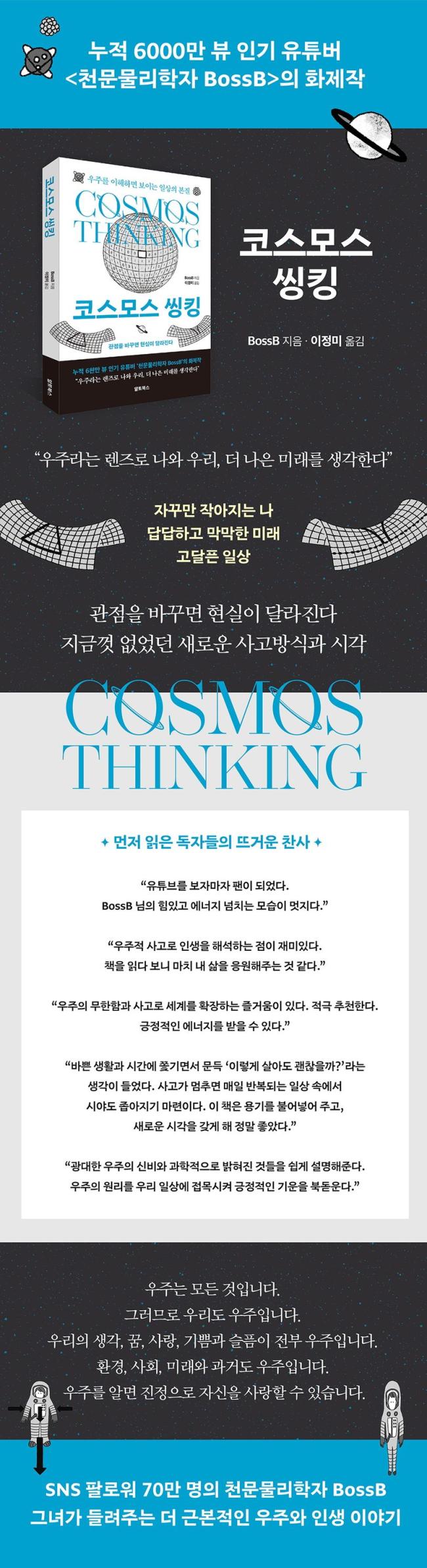 ¡®Ãµ¹®¹°¸®ÇÐÀÚBossB¡¯·Î¼ ƽÅåÀ» ºñ·ÔÇØ SNS ÆÈ·Î¿ö°¡ 70¸¸ ¸í¿¡ ´ÞÇÏ´Â Àαâ Å©¸®¿¡ÀÌÅÍ´Ù. ¿ìÁÖ¿Í ¹°¸®ÇÐÀ» ´©±¸³ª ÀÌÇØÇϱ⠽±°Ô ¼³¸íÇÏ¸é¼ ¡®¿ì¸® Á¸Àç¿Í ¼¼»óÀÇ º»Áú¡¯¿¡ ´Ù°¡°¡±â À§ÇÑ ÄÚ½º¸ð½º ¾ÅÅ·, Áï ¿ìÁÖ »ý°¢¹ýÀ» ¼Ò°³ÇØ ¿±¤ÀûÀÎ ¹ÝÀÀÀ» ¾ò°í ÀÖ´Ù. ÀúÀÚ°¡ ¿ìÁÖ¿¡ °ü½ÉÀ» °®°Ô µÈ °è±â´Â ¡°³»°¡ ¿Ö žÀ¸¸ç ¿Ö »ì¾Æ°¡°í ÀÖ´ÂÁö, ³ªÀÇ Á¸Àç ÀÇÀÇ¿Í °¡Ä¡´Â ¹«¾ùÀÎÁö¿¡ ´ëÇÑ ´äÀ» ã±â À§Çؼ¡±¿´´Ù°í ÇÑ´Ù. ±× °úÁ¤¿¡¼ ³ª¿Â ÀÌ Ã¥Àº ±×·¡¼ ´Ü¼øÇÑ °úÇÐÃ¥ÀÌ ¾Æ´Ï¶ó °úÇÐÀû »ç°í¹ýÀ» ÅëÇØ Àλý·ÐÀ» À̾߱âÇÏ´Â µ¶Æ¯ÇÑ °úÇÐ ¿¡¼¼ÀÌ´Ù.