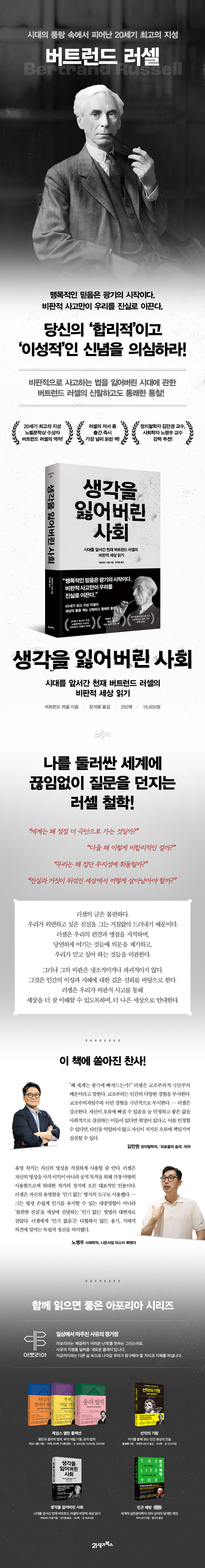 ¡º»ý°¢À» ÀÒ¾î¹ö¸° »çȸ¡»´Â ³ëº§¹®Çлó ¼ö»óÀÚÀÌÀÚ 20¼¼±â ÃÖ°íÀÇ Áö¼ºÀ¸·Î ¼Õ²ÅÈ÷´Â ¹öÆ®·±µå ·¯¼¿ÀÇ Ã¶ÇÐ ¿¡¼¼ÀÌ ¸ðÀ½ÁýÀÌ´Ù. ÀÌ Ã¥Àº 1950³â Ãâ°£ ´ç½Ã »çȸÀû Åë³ä°ú ±ÇÀ§¿¡ µµÀüÇÏ´Â ³¯Ä«·Î¿î ºñÆÇÀ¸·Î Å« ¹ÝÇâÀ» ÀÏÀ¸Ä×À¸¸ç, ¿À´Ã³¯±îÁöµµ ½Ã´ë¸¦ ÃÊ¿ùÇÏ¿© ±íÀº ÅëÂû·ÂÀ» Á¦°øÇÏ´Â °íÀüÀ¸·Î Æò°¡¹Þ´Â´Ù.