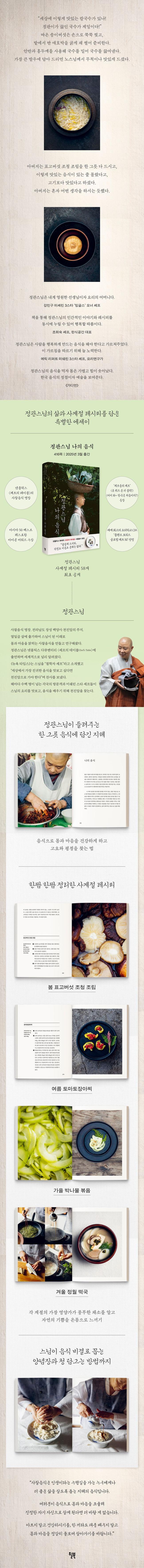 ÀÌ Ã¥Àº Á¤°ü½º´ÔÀÇ ·¹½ÃÇǸ¦ ÃÖÃÊ·Î °ø°³ÇÑ´Ù´Â Á¡¿¡¼ ´õ¿í Ưº°ÇÏ´Ù. Á¤°ü ½º´ÔÀº ´õ ¸¹Àº »ç¶÷ÀÌ Àڱ⠺ξý¿¡¼ ½º½º·Î µ¹º¸´Â ¿ä¸®¸¦ ÇÒ ¼ö ÀÖµµ·Ï, ÀÌ Ã¥À» À§ÇØ Ã³À½À¸·Î ·¹½ÃÇǸ¦ ÁýÇÊÇß´Ù. ½º´ÔÀÇ ½Ã±×´Ïó À½½Ä Ç¥°í¹ö¼¸ Á¶Ã» Á¶¸²ºÎÅÍ ¿©¸§ Å丶ÅäÀ徯Âî, °¡À» ¿ì¾û °íÃßÀå ¾ç³ä±¸ÀÌ, ½º´ÔÀÌ ÀÚ±â À½½ÄÀÇ ºñ°á·Î ²Å´Â °¢Á¾ ¾ç³äÀå°ú û ´ã±×´Â ¹æ¹ý±îÁö. ÀÚ¿¬ÀÇ ±â»ÝÀ» ¿Â¸öÀ¸·Î ´À³¢¸ç °¢ °èÀý¿¡ °¡Àå ¿µ¾ç°¡°¡ dzºÎÇÑ Ã¤¼Ò¸¦ ¾Ë°í, ½ÄÀç·á °íÀ¯ÀÇ ¸À°ú dz¹Ì¸¦ »ì¸®¸ç ¸ö°ú ¸¶À½¿¡ »ý±â¸¦ ºÒ¾î³Ö´Â ¹ýÀ» ¹è¿ï ¼ö ÀÖ´Ù. ½º´ÔÀÇ À½½ÄÀº ½±°Ô ±¸ÇÒ ¼ö ÀÖ´Â Àç·á·Î ´©±¸³ª µû¶ó ÇÒ ¼ö ÀÖ´Ù.