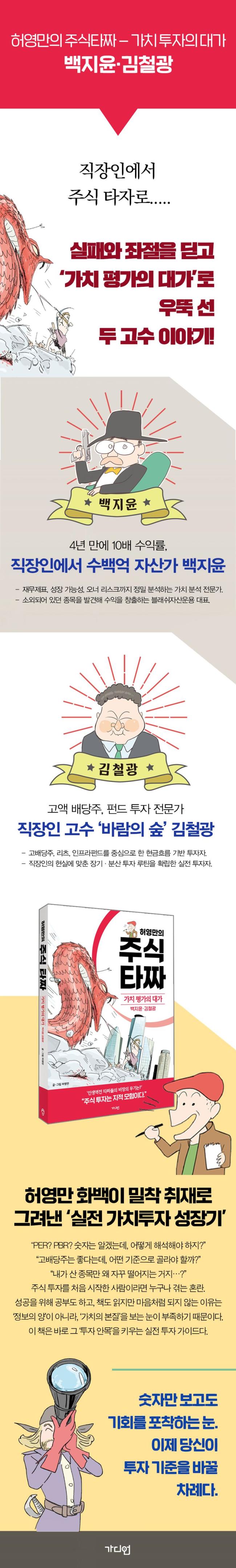 ¡°ÁÖ½Ä ÅõÀÚ´Â ´«µ¢ÀÌ ±¼¸®µí ÇØ¾ß ÇÑ´Ù.¡±´Â öÇÐÀ¸·Î ÅõÀÚÇÑ È¸»çÀÇ ¼ýÀÚ Çϳª, ÁöÇ¥ Çϳª¸¦ Àд ÈûÀ¸·Î ¼º°øÀ» °ÅµÐ °¡Ä¡ ÅõÀÚÀÇ ´ë°¡, ¹éÁöÀ±°ú ±èö±¤. ±×µéÀÌ ¼ö¸¹Àº ½ÇÆÐ¿Í ÁÂÀýÀ» µó°í ¼º°øÇØ ÁÖ½Ä Å¸Â¥·Î µ¹¾Æ¿À±â±îÁöÀÇ °¡Ä¡ ÅõÀÚÀÇ ½ÇÀü°æÇè°ú Àü·«À» »ý»ýÇÏ°Ô ´ã¾Æ³½ ¸¸È´Ù.
