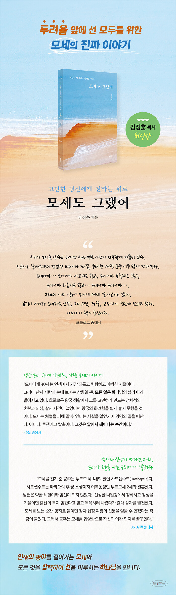 ¸ð¼¼´Â ¼º°æ ¼Ó À§´ëÇÑ ÁöµµÀÚÀÌÀÚ ÈÄ´ë°¡ Á¸°æÇÏ´Â ¿µ¿õÀ¸·Î ±â¾ïµÇÁö¸¸, ±×ÀÇ »î À̸鿡´Â Àΰ£ÀûÀÎ °í¹Î°ú ÁÂÀýÀÌ ÀÖ¾ú´Ù. ¹ÎÁ·ÀÌ Ç̹ÚÀ» ´çÇØ µÎ ¸íÀÇ ¸ðÄ£¿¡°Ô¼ ÀÚ¶ó¾ß Çß°í, ±× »çÀÌ¿¡¼ ¾îµð¿¡µµ ¼ÓÇÏÁö ¸øÇØ ±¤¾ß·Î µµ¸ÁÃÄ¾ß Çß´ø ½ÃÀýµµ ÀÖ¾ú´Ù. ÀÌÁýÆ®ÀÇ ¿Õ ¾Õ¿¡ ³ª¾Æ°¬À» ¶§, ±¤¾ß¿¡¼ À̽º¶ó¿¤ ¹é¼ºÀ» ÀεµÇϸ鼵µ µÎ·Á¿ò ¾Õ¿¡ ÁÖÀúÇÏ°í ºÐ³ë·Î ÀÎÇØ ±æÀ» Àұ⵵ Çß´Ù. »ìÀÎÀ» ÀúÁö¸£°í µµ¸ÁÃÆ´ø û³â ¸ð¼¼, Çϳª´ÔÀÇ ºÎ¸£½É ¾Õ¿¡ ¸Ó¹µ°Å¸®¸ç º¯¸íÇÏ´ø ¿¬¾àÇÑ ¸ð¼¼, ±¤¾ß¿¡¼ ¹é¼ºµéÀÇ ºÒ¸¸°ú ¿ø¸Á¿¡ ÁöÃÄ ºÐ³ëÇÏ´ø ÁöµµÀÚ ¸ð¼¼. ÀÌ Ã¥Àº ÀÌ·± ¸ð¼¼ÀÇ ¸ð½ÀÀ» ÅëÇØ Çϳª´ÔÀÌ ¸ð¼¼¸¦ ¾î¶»°Ô ´Ù·ç½Ã°í ±× °úÁ¤À» ÅëÇØ ¾î¶² ÀºÇý¸¦ ÁֽôÂÁö¸¦ º¸¿© ÁØ´Ù. À̸¦ ÅëÇØ ¸ð¼¼°¡ ´ÜÁö °ú°ÅÀÇ Àü¼³ÀÌ ¾Æ´Ï¶ó, Áö±Ý ÀÌ ½Ã´ëÀÇ ±¤¾ß¸¦ °É¾î°¡´Â ¿ì¸® ¸ðµÎÀÇ À̾߱â·Î ´Ù°¡¿À°Ô ÇÑ´Ù.