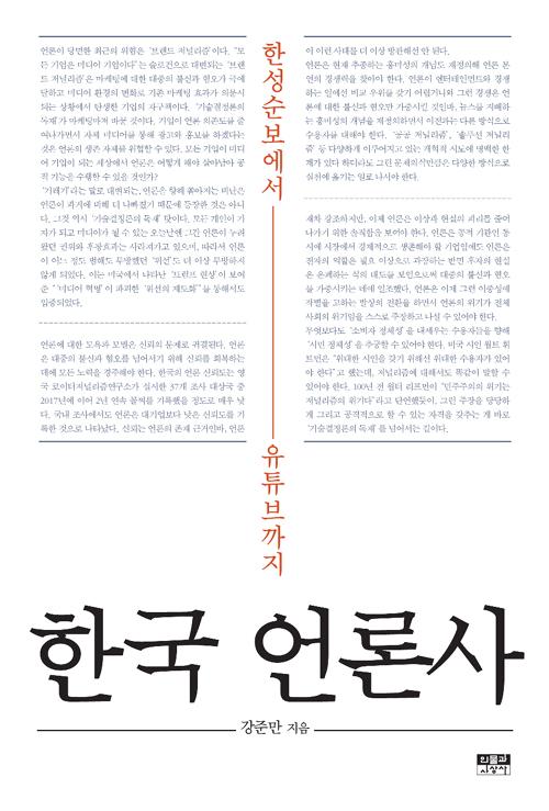 - °³È±âºÎÅÍ ¹®ÀçÀÎ Á¤±Ç±îÁö Çѱ¹ ¾ð·Ð»çÀÇ º¯È¸¦ ´ã¾Æ³»´Ù °Áظ¸ ±³¼ö´Â ¡®¾ð·Ð»ç¡¯°¡ °¡Àå Àç¹ÌÀÖ°í À¯ÀÍÇÑ °ú¸ñÀÌ µÉ ¼ö ÀÖÀ¸¸ç µÇ¾î¾ß ÇÑ´Ù°í ¹Ï´Â ¾ð·ÐÇÐÀÚ´Ù. ¡ºÇѱ¹ ¾ð·Ð»ç¡»´Â ÀÌ·± »ý°¢¿¡ ±â¹ÝÇØ ÁýÇÊÇÑ Ã¥ÀÌ´Ù. °Áظ¸ ±³¼ö´Â ¡®»çȸ¸¦ £Àº ¾îµÒ ¼Ó¿¡ ³öµÎÁö ¾Ê°í ¾ð·Ð °ü·Ã »ç°ÇÀÇ ¸Æ¶ôÀ» Á¦½ÃÇØÁÖ´Â ¹æ½Ä¡¯À¸·Î ÀÌ Ã¥À» ÁýÇÊÇß´Ù. ÀÌ Ã¥¿¡¼´Â »çȸ¸¦ £Àº ...