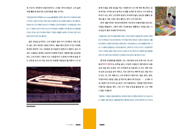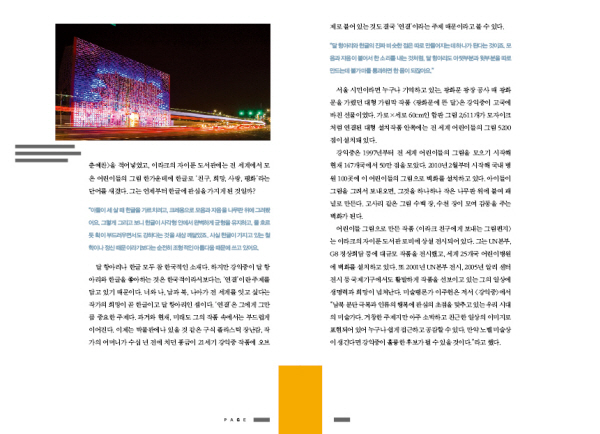 °ø°ø¹Ì¼úÀº ¸í¶ûÇÏ°Ô ÇÏ´Â Çõ¸íÀ̶ó¼ Áß¿äÇØ¿ä. »çȸ Çõ¸íÀ» ÇÏ´õ¶óµµ ¸í¶ûÇÏ°í ´Ü¼øÇÏ°Ô ÇÏ´Â °Ô Áß¿äÇÕ´Ï´Ù. ¿ì¿ïÇÏ°Ô ÇÏ¸é ¾È µÅ¿ä. °ø°ø¹Ì¼úÀº ¸ðµÎ¿¡°Ô °ñ°í·ç Èñ¸ÁÀ» ÁÖ´Â ¹Ì¼úÀÌÁÒ. ‘¾ÆÆ® Æ÷ ÇÇÇÃ(Art for People)’ÀÔ´Ï´Ù. ±×·¡¼ ½ÃÀå¿¡¼ ÆÈ ¼ö ÀÖ´Â ÀÛǰº¸´Ù ÈξÀ Áß¿äÇØ¿ä. -º»¹® 196ÂÊ °ÀÍÁß À̾߱â Áß