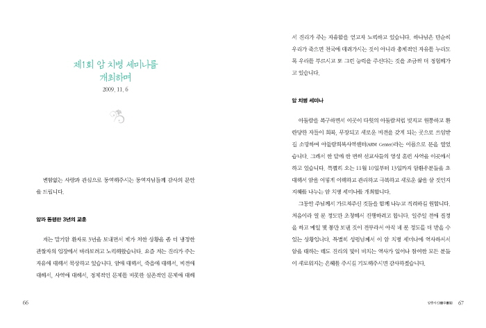 ¡Ü 2009³â 11¿ù 10~13ÀÏ : ¾ÏȯÀÚµéÀ» À§ÇÑ Á¦1ȸ ¼¼¹Ì³ª °³ÃÖ (Àå¼Ò: ¾ÆµÑ¶÷)