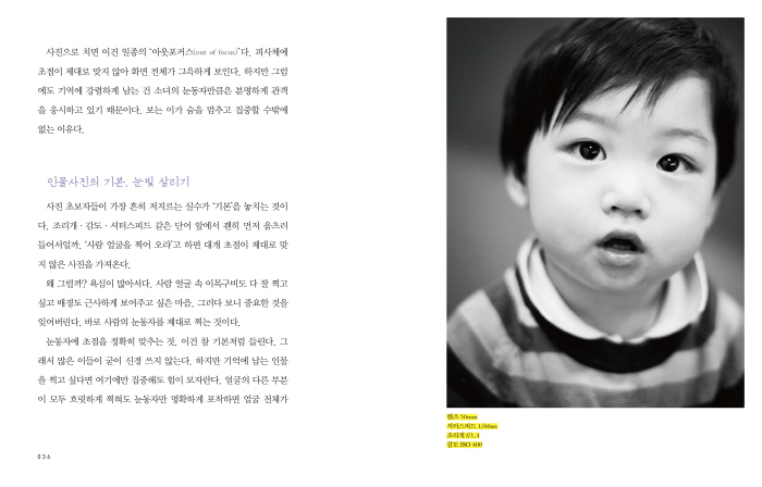 ´«µ¿ÀÚ¿¡ ÃÊÁ¡À» Á¤È®È÷ ¸ÂÃß´Â °Í. ÀÌ°Ç Âü ±âº»Ã³·³ µé¸°´Ù. ±×·¡¼ ¸¹Àº À̵éÀÌ ±»ÀÌ ½Å°æ ¾²Áö ¾Ê´Â´Ù. ÇÏÁö¸¸ ±â¾ï¿¡ ³²´Â Àι°À» Âï°í ½Í´Ù¸é ¿©±â¿¡¸¸ ÁýÁßÇØµµ ÈûÀÌ ¸ðÀÚ¶õ´Ù. ¾ó±¼ÀÇ ´Ù¸¥ ºÎºÐÀÌ ¸ðµÎ È帴ÇÏ°Ô ÂïÇôµµ ´«µ¿ÀÚ¸¸ ¸íÈ®ÇÏ°Ô Æ÷ÂøÇÏ¸é ¾ó±¼ Àüü°¡ °·ÄÇØÁø´Ù. _1ºÎ Áß <´«ºûÀ» »ì¸®¸é ¾ó±¼ÀÌ »ê´Ù> p.36~38