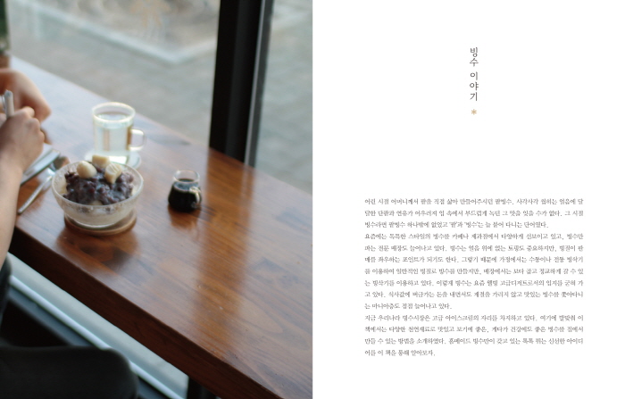 ³ª´Â ºù¼ö¸¶´Ï¾Æ ºù´öÈÄÀÌ´Ù. ÀÚÀÇ ¹Ý ŸÀÇ ¹ÝÀ¸·Î µé¾î°£ ½ÅÃÌÀÇ Y´ë¿¡¼ »ý¸í°øÇÐÀ» Àü°øÇÏ¿´´Ù. »ý¹°ÇÐ ¿¬±¸¿¡¸¸ ºüÁ® ÀÖ´ø ¾î´À ³¯, ¿ì¿¬È÷ Çб³ ¾Õ¿¡¼ ¸ÔÀº ºù¼ö°¡ ³ªÀÇ »îÀ» ¹Ù²Ù´Â °è±â°¡ µÇ¾î¹ö·È´Ù. ¡®È¨¸ÞÀÌµå ºù¼öÇС¯ ³»°¡ »õ·Ó°Ô ½ÃÀÛÇÑ Àü°øÀÌ´Ù. ±×¶§ºÎÅÍ ³ª´Â ºù¼ö¸¸ ¸Ô°í, ºù¼ö¸¸ º¸°í, ºù¼ö¸¸ »ý°¢Çß´Ù. Àü±¹ÀÇ ºù¼ö°¡°ÔµéÀ» »ô»ôÀÌ µÚÁö°í, ¸Ô¾îº» ºù¼öµéÀ» ºÐ¼®Çϰí, Áý¿¡ ¿Í¼ Àç¿¬ÇØº¸´ø Áß, ½É¾ß¿¡ ´À´å¾øÀÌ Ã£¾Æ¿Â Ä£±¸°¡ ³ªÀÇ ºñ¹Ð ·¹½ÃÇǸ¦ º¸°í´Â ¼¼»ó¿¡ °ø°³ÇÏÀÚ´Â Á¦¾ÈÀ» Çß´Ù. È¥ÀÚ¼¸¸ ±× ¼¼°è¸¦ Áñ°å´ø ³ª·Î¼´Â ¸Á¼³¿©Á³Áö¸¸, ÀÌ¹Ì ·¹½ÃÇǴ ģ±¸¿¡°Ô ³Ñ¾î°£ »óÅÂ. °á±¹ ¼ú ´ë½Å ºù¼ö¸¦ ³ª´©¾î ¸ÔÀ¸¸é¼ µÑÀÇ ±ØÀûÀÎ ÇÕÀǰ¡ ÀÌ·ç¾îÁ® µåµð¾î ³ª¸¸ÀÇ ·¹½ÃÇǰ¡ ÀÌ Ã¥À¸·Î ¼¼»ó¿¡ ¼±º¸ÀÌ°Ô µÇ¾ú´Ù. Èʳ¯ ±ú²ýÇÑ ¹°, õ¿¬Àç·á·Î¸¸ ºù¼ö¸¦ ¸¸µå´Â ¡®°Ç° ºù¼ö Ä«Æä¡¯¸¦ ¿©´Â °ÍÀÌ ³ªÀÇ ²ÞÀÌ´Ù.