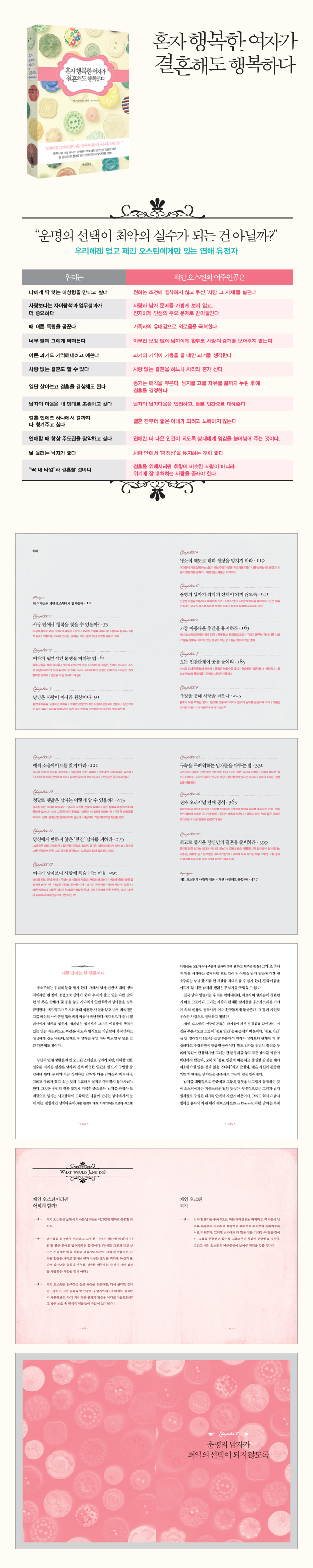 Á¦ÀÎ ¿À½ºÆ¾ÀÇ ¿·ÄÇÑ ÆÒÀÎ ÀúÀÚ´Â 200³âÀÌ Áö³ªµµ ³Î¸® »ç¶û¹Þ´Â ¿À½ºÆ¾ÀÇ ¼Ò¼³°ú Àϱâ, ÆíÁö µî¿¡¼, ½Ã´ë¸¦ ÃÊ¿ùÇÏ¿© ¿©ÀÚµéÀÇ Àλý¿¡ µµ¿òÀ» ÁÙ ¼ö ÀÖ´Â »îÀÇ ½ºÅ丮¸¦ ã¾Æ³»¾î öÀúÇÏ°Ô ºÐ¼®Çß´Ù. ¡¶¿À¸¸°ú Æí°ß¡·ÀÇ ¿¤¸®ÀÚº£½º, ¡¶À̼º°ú °¨¼º¡·ÀÇ ¿¤¸®³Ê, ¡¶¼³µæ¡·ÀÇ ¾Ø ¿¤¸®¾ù °°Àº ÀÌ»óÀûÀÎ ¿©ÁÖÀΰøÀÇ »ç·Ê¸¦ ÅëÇØ, °¡Àå ÇÕ¸®ÀûÀÎ ¹æ½ÄÀ¸·Î ¹è¿ìÀÚ¸¦ ¼±ÅÃÇÏ´Â ¹ý°ú °áÈ¥ ÀÌÈÄ¿¡ µÎ »ç¶÷ÀÌ ¡®ÇÔ²²¡¯ ÇູÇϱâ À§ÇÑ ¸íÄèÇÏ°íµµ Çö½ÇÀûÀÎ ÇØ´äÀ» Á¦½ÃÇÑ´Ù. ÀÌ Ã¥Àº ³¶¸¸°ú ³Ã¼Ò·Î °¡µæÇÑ <ºê¸®Áþ Á¸½ºÀÇ Àϱâ>¿Í <¼½½º ¾Ø ´õ ½ÃƼ>ÀÇ ¿¬¾Ö °ø½ÄÀ» ¹ö¸®°í, ³²³à°¡ ¼·Î ¼ºÀåÇÒ ¼ö ÀÖ´Â °áÈ¥°üÀ» Á¦½ÃÇÑ Ã¥À¸·Î Æò°¡¹Þ´Â´Ù.