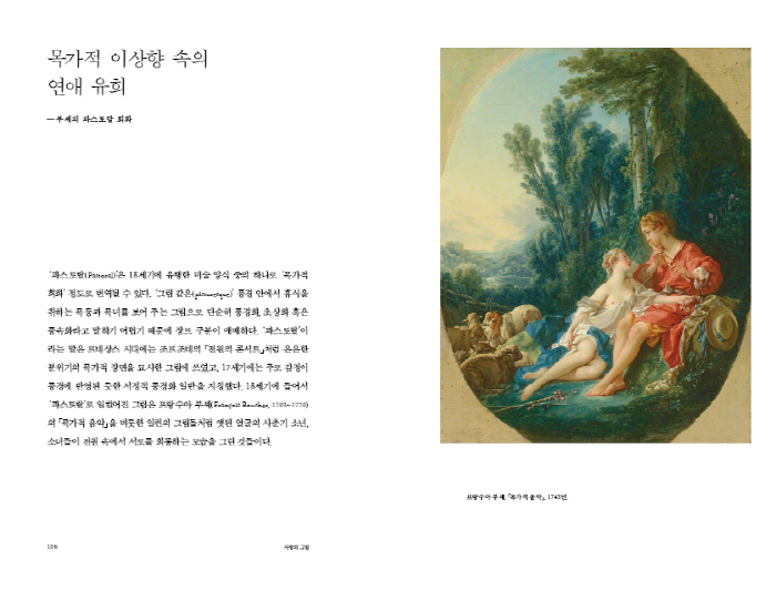 ¡¦¡¦»ç³É, °ÔÀÓ, Ãã, ¿ì¾ÆÇÏ°í ¾Ö±³ ³ÑÄ¡´Â ¹®ÀÚ ±×´ë·Î ¡®°¥¶ûÆ®¸®(galanterie)¡¯ÇÑ ½Ç³» ¿¬È¸¿Í ½Ç¿ÜÀÇ ´ëÈ Àå¸é, ÀçÄ¡ ÀÖ´Â ±³ÅÂ(coquettrie)¿Í µÚ¼¯ÀÎ °¨¹Ì·Î¿î ¿¬¾Ö¸¦ ±×·È´Ù. ÀÌ·± ±×¸²¿¡´Â 17¼¼±â ¹Ù·ÎÅ©¶óµçÁö 19¼¼±â ½Å°íÀüÁÖÀÇÀÇ ±×¸²¿¡¼ º¸ÀÌ´Â ¸í¹éÇÑ µµ´öÀû ÈÆ°è´Â º¸ÀÌÁö ¾Ê´Â´Ù. ¿À·ÎÁö ±×µéÀÇ »îÀº ¼¼·ÃµÈ ³îÀÌ¿Í »ç±³·Î ¼ÒÁøµÇ´Â °Íó·³ º¸ÀδÙ. ¡¦¡¦ °¡º¿ì³ª °æ¹ÚÇÏÁö ¾Ê°í ÃÊ¿¬Çϸ鼵µ Á¤ÁßÇÑ, ¿ì¾ÆÇÔÀÌ ±êµç ´ç´çÇÑ ¸ð½ÀÀº ¿¤¸®Æ® °èÃþÀÌ ±×µé ÀÚ½ÅÀ» º¸°íÀÚ ÇÏ´Â ¹æ½ÄÀ̾ú´Ù.(255ÂÊ)