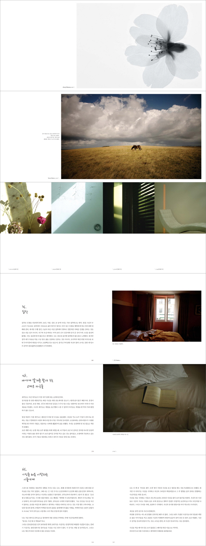 ¼¼»óÀ» »ì¸é »ì¼ö·Ï ¿ì¸° À¯¿¬ÇØÁø´Ù. ±îÄ¥ÇÑ ±èÀÛ°¡´Â ¾î´À»õ Ä£ÀýÇÑ ±èÀÛ°¡ÀÏ ¶§°¡ ´õ ¸¹´Ù. ±×¸®°í ³»°¡ °¡Á³´ø »çÁø°¡·Î¼ÀÇ ¸í·áÇÑ »ö±òÀº ¸¹Àº À̹ÌÁöµéÀ» Âï°í º¸¾Ò´ø ½Ã°£°ú ºñ·ÊÇÏ¿© ÇϾá»ö ¹°°¨ÀÌ Æ¢¾î ¼¯ÀÎ µí ºûÀÌ Á¶±Ý ¹Ù·¨´Ù. ½Ã°£ÀÌ ¼º°ÝÀ» µÕ±Û°Ô ¸¸µé¾î ÁÖ´Â °ÍÀº °í¸¶¿î ¹Ý¸é, ³» »çÁøÀÌ µÕ±Û¾îÁö´Â °ÍÀº ¾ÈŸ±õ´Ù.
