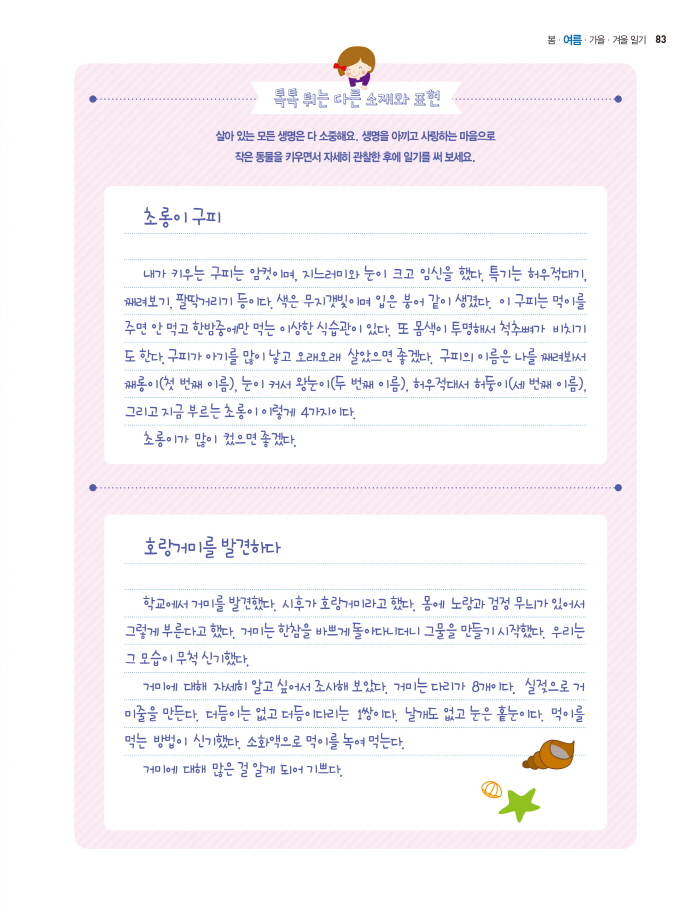 ¼±»ý´ÔÀº ¾î·ÈÀ» ¶§ ¿©´À ¾ÆÀ̵éó·³ ±Û¾²±â¸¦ ÁÁ¾ÆÇÏÁö ¾Ê¾Ò´ë¿ä. ÇÏÁö¸¸ ±ÛÀ» ¾µ ÀϵéÀÌ Á¡Á¡ ¸¹¾ÆÁö¸é¼ ¾î¶»°Ô ÇÏ¸é ¼ú¼ú Àß ¾µ ¼ö ÀÖ´ÂÁö °øºÎÇÏ°í ¿¬½ÀÇß¾î¿ä. ±× °á°ú ¹®Àå ¸¸µé±â°¡ °¡Àå Áß¿äÇÏ´Ù´Â °É ¾Ë°Ô µÇ¾ú¾î¿ä. ±×·¡¼ ÀÌ Ã¥¿¡ ±Û¾²±âÀÇ ½ÃÀÛÀÌÀÚ µçµçÇÑ ±âÃÊÀÎ ¹Ù¸¥ ¹®Àå ¸¸µé±âÀÇ ºñ¹ýÀ» ¸ðµÎ ´ã¾Ò¾î¿ä.