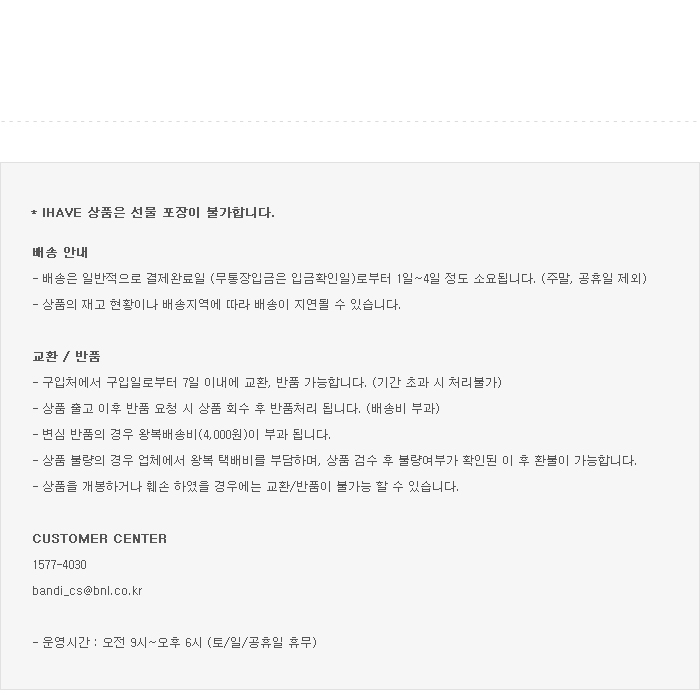 »óǰ ¼³¸í¿¡ ¹Ýǰ/±³È¯ °ü·ÃÇÑ ¾È³»°¡ ÀÖ´Â °æ¿ì ±× ³»¿ëÀ» ¿ì¼±À¸·Î ÇÕ´Ï´Ù.(¾÷ü »çÁ¤¿¡ µû¶ó ´Þ¶óÁú ¼ö ÀÖ½À´Ï´Ù)