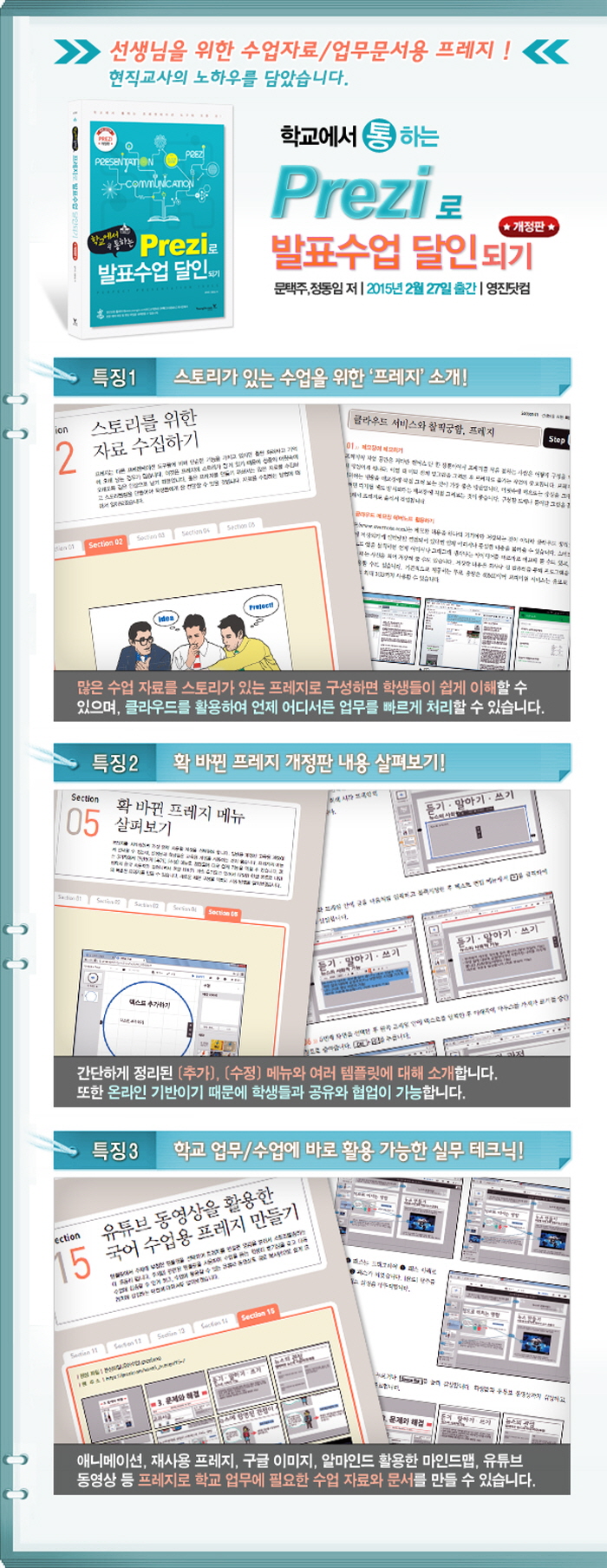 º» ±³Àç´Â È® ¹Ù²ï ÇÁ·¹ÁöÀÇ »õ·Î¿î ¸Þ´ºµéÀ» ÁßÁ¡À¸·Î ¾÷µ¥ÀÌÆ®µÇ¾î ´Ù½Ã µ¹¾Æ¿Â [Çб³¿¡¼ ÅëÇÏ´Â Prezi·Î ¹ßÇ¥¼ö¾÷ ´ÞÀεDZ⠰³Á¤ÆÇ] µµ¼ÀÔ´Ï´Ù. ±âÁ¸ µµ¼¿¡¼ °Á¶µÈ Çб³ ¾÷¹«»Ó¸¸ ¾Æ´Ï¶ó ¼ö¾÷ ÀڷḦ ´Ù¾çÇÏ°Ô °øÀ¯ÇÏ´Â ¹æ¹ýÀ̳ª Çлýµé°ú °øµ¿ ÀÛ¾÷ÇÏ´Â ¹æ¹ý µîÀ» ¼Ò°³ÇÕ´Ï´Ù. ¼ö¾÷ ½Ã°£¿¡ Ȱ¿ëÇÒ ¼ö ÀÖ´Â ¿©·¯ °¡Áö ÇÁ·¹Áö »ç¿ë¹ý°ú ½ÇÁ¦ Çб³ ¾÷¹«¿¡¼ ¹Ù·Î Ȱ¿ëÇÒ ¼ö ÀÖ´Â ÇöÁ÷ ±³»çÀÇ ³ëÇϿ츦 ´ã°í ÀÖ½À´Ï´Ù. ¶ÇÇÑ, ´Ù¾çÇÑ ¼ö¾÷ °ü·Ã ¿¹Á¦¸¦ Ȱ¿ëÇÏ¿© ±âȹºÎÅÍ ¿Ï¼º±îÁö ½±°Ô ¹è¿ï ¼ö ÀÖ´Â ½Ç¹« Å×Å©´ÐÀ¸·Î ±¸¼ºµÇ¾î ÀÖ½À´Ï´Ù.