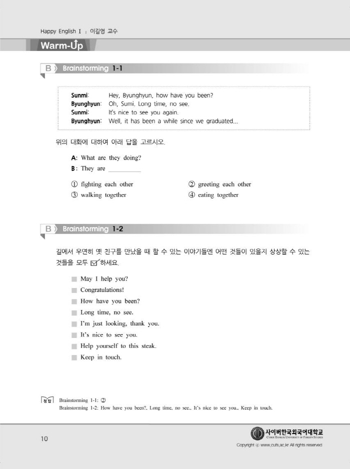 Happy English IÀº »çÀ̹öÇѱ¹¿Ü±¹¾î´ë ¿µ¾î°úÀÇ Á¤±Ô°ú¸ñÀ¸·Î ¸Å¿ì Àαâ ÀÖ´Â ¡®Ãʱ޿µ¾îÈ¸È I¡¯¿¡ »ç¿ëµÇ´Â ±³ÀçÀ̱⵵ ÇÏ´Ù. ¸Å¿ì ü°èÀûÀÌ°í ¹° È帣µí ´Ü°èÀûÀ¸·Î ÇнÀÀÌ ÀÌ·ç¾îÁöµµ·Ï µÇ¾î ÀÖÀ» »Ó ¾Æ´Ï¶ó ³»¿ë¿¡ Èï¹Ì°¡ ´õÇØÁ® ¼ö°»ýµéÀÇ Æò°¡°¡ ¸Å¿ì ³ôÀº °ú¸ñÀÌ´Ù.