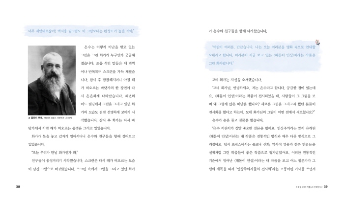 ¾î¸°À̵éÀÌ ÀλóÁÖÀÇ È°¡ 8¸í°ú ´ëÈÇÏ´Â Çü½ÄÀ¸·Î ±¸¼ºµÈ ÀÌ Ã¥Àº ¹Ì¼ú»çÀûÀÎ ¸Æ¶ôÀ» ³õÄ¡Áö ¾ÊÀ¸¸é¼µµ ¹Ì¼ú °¨»óÀÇ ÁÖ°üÀûÀÎ ÀÇ¹Ì¿Í Áñ°Å¿òÀ» µ¿½Ã¿¡ º¸¿©ÁÖ°í ÀÖ½À´Ï´Ù. ÀúÀÚ°¡ Á¦½ÃÇÏ´Â »ó»ó·ÂÀ» Ȱ¼ºÈÇÏ´Â À̾߱⠱¸Á¶ÀÇ Ã¢ÀÇÀûÀÎ °¨»ó ¹æ½ÄÀº »ý¾Öù ¹Ì¼ú °¨»óÀÚÀÎ ¾î¸°ÀÌ´Â ¹°·Ð ¹Ì¼ú °¨»ó °æÇèÀÌ ¸¹Àº Çкθðµé¿¡°Ôµµ âÀÇÀû ¹®ÈÇâÀ¯ ¹× °øÀ¯ Ȱµ¿¿¡ ¹Ø°Å¸§ÀÌ µÇ¾î ÁÙ °ÍÀ¸·Î ¹Ï½À´Ï´Ù.