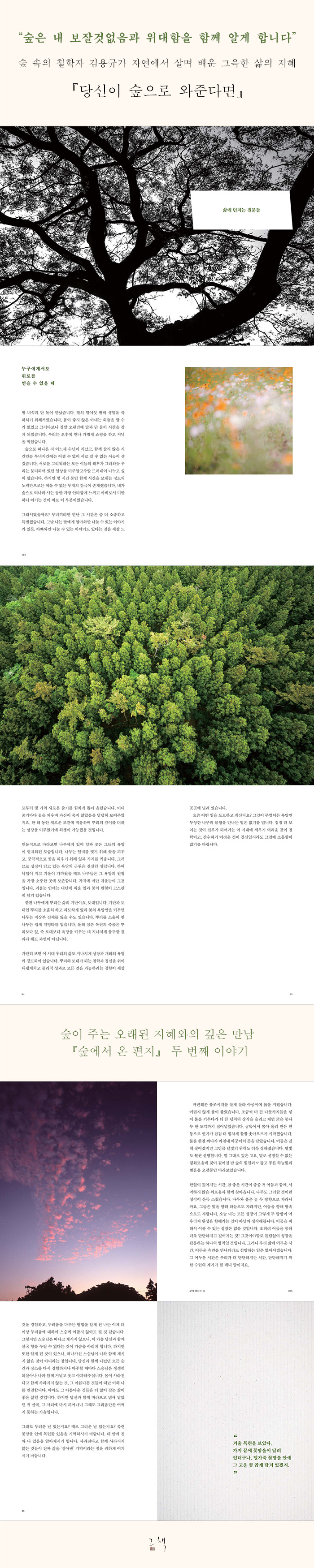 ÀÚ¿¬°ú ´õºÒ¾î ½£ÀÌ ÀÚ½ÅÀÇ ¸ðµç °ÍÀÎ ±è¿ë±Ô´Â ÇѶ§ ¼¿ï¿¡¼ º¥Ã³±â¾÷ÀÇ CEO¸¦ 7³â°£ ¼öÇàÇÏ¿´´Ù. Áö±ÝÀº Á÷Á¢ ÁöÀº ½£ ¼Ó ¿ÀµÎ¸· ¡®¹é¿À»ê¹æ¡¯¿¡¼ »ý¸í°ú Çϳª µÇ¾î, ±×¸®°í ÀÌ¿ô°ú ÇÔ²² ¡®½º½º·Î¸¦ ³ë·¡ÇÏ´Â »î¡¯À» »ì°í ÀÖ´Ù. ¡®¹é¿À»ê¹æ¡¯ÀÌ ÀÖ´Â ÃæºÏ ±«»êÀÇ ¿©¿ì½£¿¡¼ ´Ù¼¸ ÇØ¸¦ º¸³»¸é¼ ÀÌ¿ô°ú µµ½ÃÀÎÀÇ Âü¿©¸¦ À̲ø¾î ¡®½£Çб³ ¿À·¡µÈ¹Ì·¡¡¯¸¦ ¼³¸³Çß´Ù. ÁÖ¿ä Àú¼·Î´Â ½£ÀÇ °¡¸£Ä§À» À̾߱âÇÑ ¡¶½£¿¡°Ô ±æÀ» ¹¯´Ù¡·¿Í, ¿Ïµµ±ºÀÇ ¾Æ¸§´Ù¿î ¼¶, û»êµµÀÇ »ýÅÂ¿Í ¹®È¸¦ ¾È³»ÇÏ´Â ¡¶Ã»»êµµ »ýŹ®Èµµ°¨(°øÀú)¡· µîÀÌ ÀÖ´Ù.