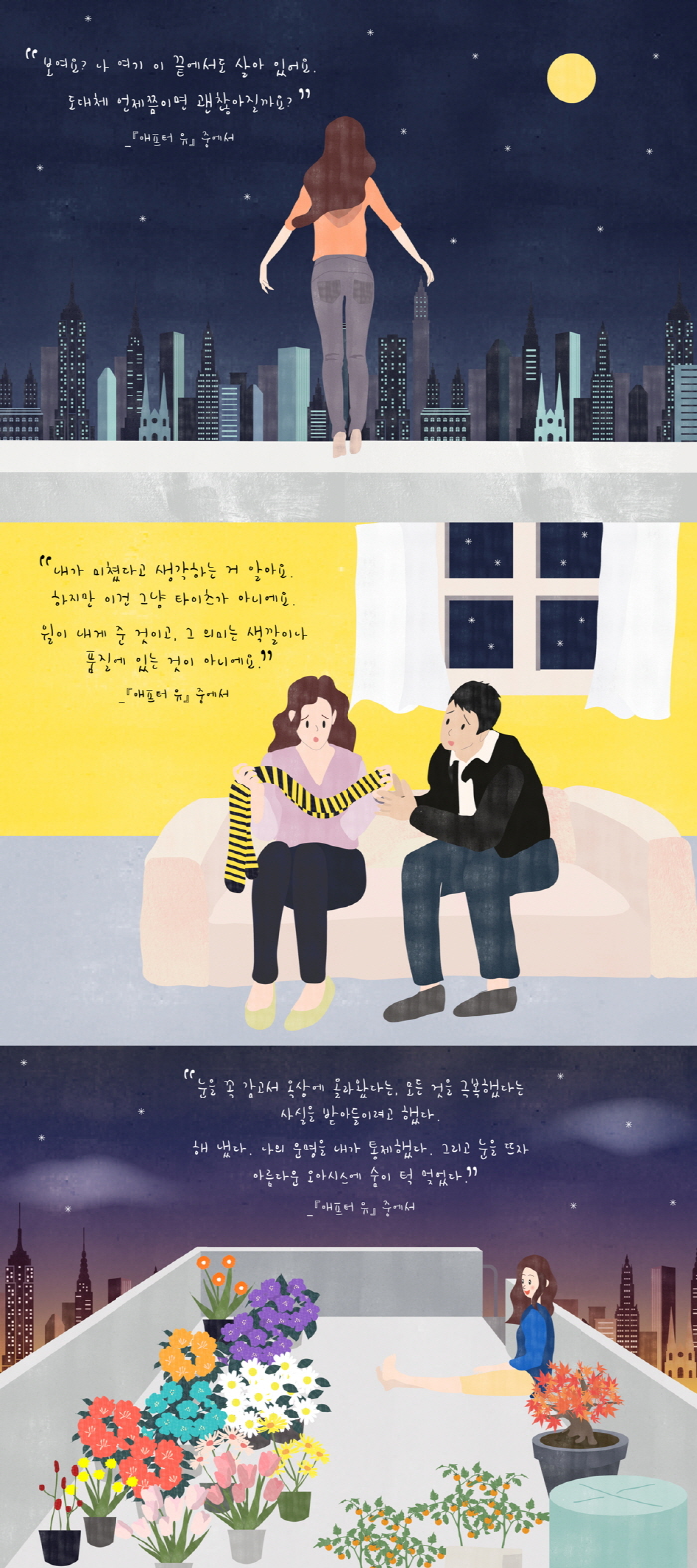 * ¿ì¸®°¡ ³¯¸¶´Ù µû¸£´ø Àϰú°¡ »ç¶óÁö´Ï °¥ÇǸ¦ ÀâÀ» ¼ö ¾ø¾ú´Ù. ¸î ÁÖ°¡ Áö³ª¼¾ß °Ü¿ì ±×ÀÇ ¸öÀ» ³¯¸¶´Ù ¸¸Áú ¼ö ¾ø¾îµµ ¼ÕÀÌ ¾µ¸ð¾øÀÌ ´À²¸ÁöÁö ¾Ê°Ô µÆ´Ù. ´ÜÃ߸¦ ä¿öÁÖ´ø ºÎµå·¯¿î ¼ÅÃ÷, °¡¸¸È÷ ¾Ä¾îÁÖ´ø µû¶æÇÑ ¼Õ, ¾ÆÁ÷µµ ¼Õ³¡¿¡ °¨ÃËÀÌ ´À²¸Áú °Í °°Àº ¸Å²ô·¯¿î ¸Ó¸®Ä«¶ô, ±×ÀÇ ¸ñ¼Ò¸®, °©ÀÚ±â ÅͶ߸®´ø ±×ÀÇ µå¹® ¿ôÀ½, ³» ¼Õ°¡¶ô¿¡ ´ê´Â ±×ÀÇ ÀÔ¼ú, Àáµé±â Á÷Àü ±×ÀÇ ´«²¨Ç®ÀÌ ³»·Á¾É´ø ¸ð½ÀÀÌ ±×¸®¿ü´Ù. ³»°¡ ÇÑ ÀÏ¿¡ ¾ÆÁ÷µµ °æ¾ÇÇϰí ÀÖ´Â ¾ö¸¶´Â ³ª¸¦ »ç¶ûÇÏÁö¸¸, ±×·± ÀÏÀ» ÀúÁö¸¥ ·çÀÌÀÚ¸¦ ÀڱⰡ Ű¿î µþÀ̶ó°í ¿©±æ ¼ö ¾ø´Ù°í Çß´Ù. ³ª´Â »ç¶ûÇÑ ³²ÀÚ¿Í °¡Á·À» µ¿½Ã¿¡ ÀÒ¾î¹ö¸®°í ³» Á¸Àç¿Í ¿¬°áµÈ ¸ðµç °ÍÀ» »ó½ÇÇß´Ù. ¿¬°áµÈ °Í Çϳª ¾øÀÌ ¹ÌÁöÀÇ ¿ìÁÖ¸¦ ºÎÀ¯ÇÏ´Â ±âºÐÀ̾ú´Ù.