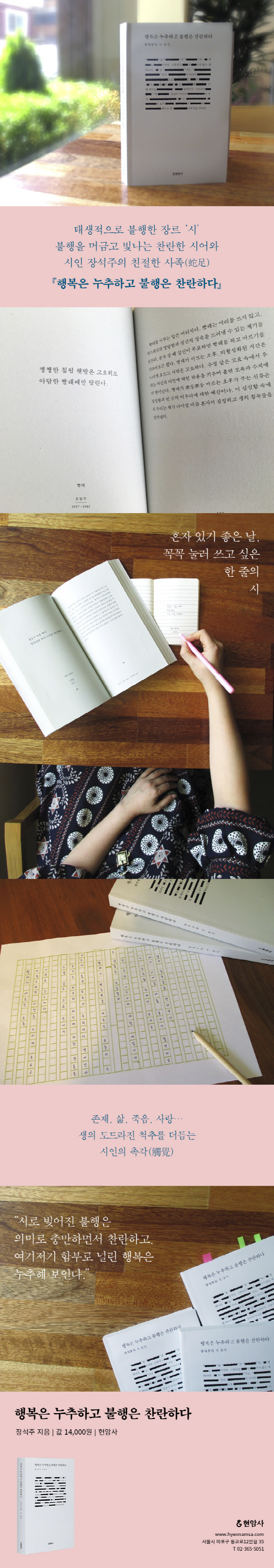 ³» Á¼Àº »ý°¢¿¡, ½Ã´Â ºÒÇàÀÇ À帣, ¾îµÎ¿î ±â¾ïÀÇ À帣´Ù. ½ÃÀεéÀº ´Ã ºÒÇàÀÇ ¼¼¸ñ(á¬ÙÍ)µéÀ» ¸ðÀ¸°í, ±×¿¡ ´ëÇØ ³ë·¡ÇÑ´Ù. ½Ã°¡ ºÒÇà¿¡ ´ëÇÑ ³ë·¡¶ó°í? ±×·¸´Ù. »îÀÌ ºÒÇàÀ» ¸Ó±Ý°í ÀÖÀ¸´Ï ½Ãµµ ºÒÇàÀ» ¸Ó±Ý´Â´Ù. (¡¦¡¦) ½ÃÀÎÀ̶õ ºÒÇàÀ» »ó½ÀÈÇÏ¸é¼ ºÒÇàÀ» ¿¬±â(æÑÐü)ÇÏ´Â ÀÚ´Ù. µû¶ó¼ ¸ðµç ½Ã´Â ºÒÇà¿¡ µé¸° ÀÚµé ¡ª ÆÐÀÚµé, ¸ô¶ôÇÑ ÀÚµé, Á×Àº ÀÚµé, ¶°µµ´Â ÀÚµé ¡ª ÀÇ ¿µÈ¥À» ¶Õ°í ³ª¿Â ¸ñ¼Ò¸®´Ù. ½Ã·Î ºú¾îÁø ºÒÇàÀº ÀÇ¹Ì·Î Ãæ¸¸ÇÏ¸é¼ Âù¶õÇϰí, ¿©±âÀú±â ÇԺηΠ³Î¸° ÇູÀº ´©ÃßÇØ º¸ÀδÙ.