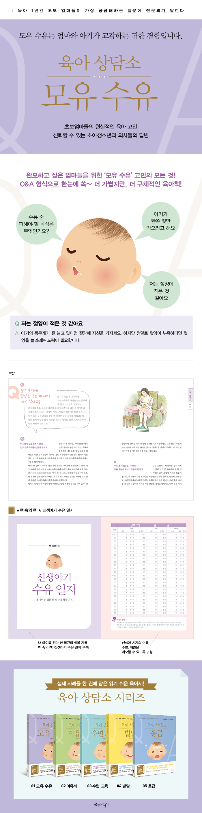 Ãʺ¸ ¾ö¸¶¿¡°Ô´Â ¾î·Æ°í ¹ö°Å¿î ³» ¾Æ±âÀÇ »ýÈÄ 1³â, ÀÎÅͳÝÀ̳ª ¼±¹è ¾ö¸¶µéÀ» ÅëÇØ ¼²ºÒ¸® Á¢ÇÏ´Â À°¾Æ ÀÇÇÐ Á¤º¸´Â À§ÇèÇÒ ¼ö ÀÖ´Ù. <À°¾Æ »ó´ã¼Ò> ½Ã¸®Áî´Â Áø·á½ÇÀ» ãÀº Ãʺ¸ ¾ö¸¶µéÀÇ À°¾Æ °í¹Î°ú ÀÎÅͳݿ¡ ¶°µµ´Â À߸øµÈ À°¾Æ Á¤º¸¿¡ ´ëÇØ ¼Ò¾ÆÃ»¼Ò³â°ú Àü¹®ÀÇÀÇ ½Å·Úµµ ³ôÀº ´äÀ» ´ãÀº ¡®À°¾Æ ÀÇÇÐ »ó´ã ¹é°ú¡¯·Î, ¸ðÀ¯ ¼öÀ¯, ÀÌÀ¯½Ä, ¼ö¸é ±³À° µî ¾ö¸¶µéÀÌ °¡Àå Èûµé¾îÇÏ´Â À°¾Æ ºÐ¾ß¸¦ °¢ ±Ç¿¡ ´ã¾Ò´Ù.(¾Æ±â ¹ß´Þ, ÀÀ±Þ »óȲ_Ãâ°£ ¿¹Á¤)