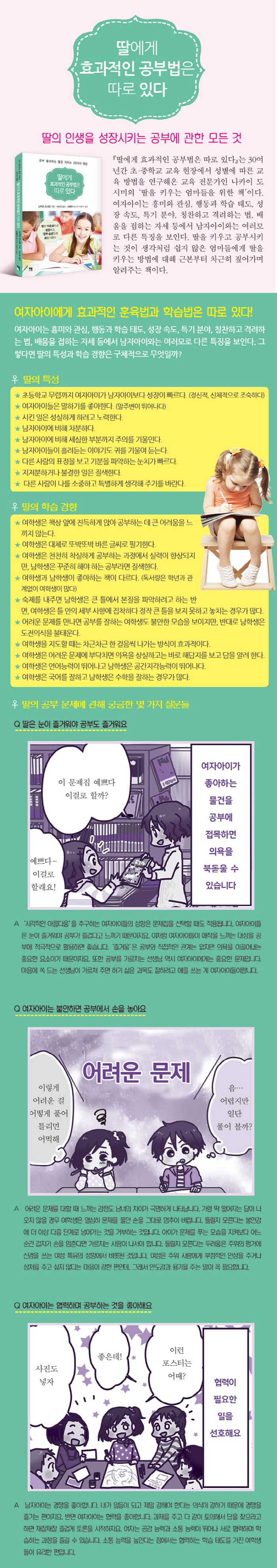 ³²ÀÚ¿Í ¿©ÀÚ´Â ¼ºº°ÀÌ ´Ù¸¥ ¸¸Å Â÷À̰¡ Á¸ÀçÇÑ´Ù. ±×·¸±â ¶§¹®¿¡ µþ°ú ¾ÆµéÀ» Ű¿ï ¶§µµ ¹æ¹ýÀÌ ´Þ¶ó¾ß ÇÑ´Ù. ¡ºµþ¿¡°Ô È¿°úÀûÀÎ °øºÎ¹ýÀº µû·Î ÀÖ´Ù¡»´Â ÃʵîÇб³ ¿©ÀÚ¾ÆÀÌ¿¡°Ô È¿°úÀûÀÎ °øºÎ¹ýÀ» ¼Ò°³ÇÑ Ã¥ÀÌ´Ù. ±×·¯³ª ÀÌ Ã¥¿¡¼ ¼Ò°³ÇÏ´Â °øºÎ¹ýÀº ÃʵîÇб³ ¿©ÀÚ¾ÆÀ̻Ӹ¸ ¾Æ´Ï¶ó ¼ºÀÎ ¿©ÀÚ¿¡°Ô±îÁö Àû¿ëÀÌ °¡´ÉÇÑ ¸¸Å ¿©ÀÚÀÇ Æ¯¼º°ú ÇнÀ °æÇâ, ŵµ µî¿¡ ´ëÇØ ¾Ë±â ½±°Ô ¼³¸íÇϰí ÀÖ´Ù. ÀÌ Ã¥Àº ±³À° Àü¹®°¡·Î¼ 20¿©³â ÀÌ»ó ½×¾Æ¿Â ÀúÀÚÀÇ °æÇèÀ» ¹ÙÅÁÀ¸·Î °°Àº ¼ºº°À» °¡Áø ¾ö¸¶¶óµµ Àß ÀÌÇØµÇÁö ¾Ê´Â µþÀÇ Æ¯¼ºÀ» Á¤È®È÷ ÆÄ¾ÇÇÏ¿© ÈÆÀ°ÇÒ ¼ö ÀÖµµ·Ï ÇÏ¿´´Ù. ¶ÇÇÑ °¡Á¤¿¡¼ ÇнÀÀ» ÁöµµÇÏ´Â ¹æ¹ý¿¡ ´ëÇØ¼µµ ÀÚ¼¼È÷ ¾Ë·ÁÁÖ°í ÀÖ´Ù.