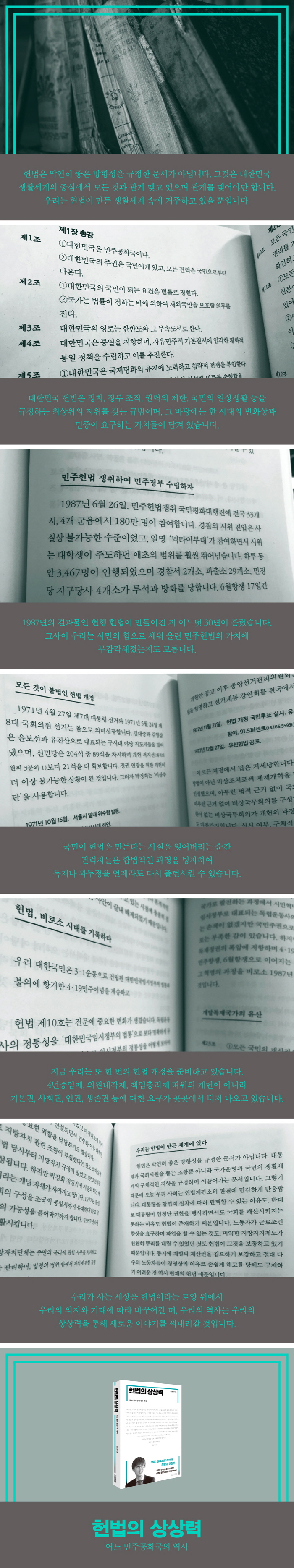 ±×·¸´Ù¸é Çå¹ýÀº ¹«¾ùÀ̰í, Çå¹ýÀûÀÎ °Í°ú À§ÇåÀûÀÎ °ÍÀº ¶Ç ¹«¾ùÀϱî¿ä. ÇÑ ³ª¶óÀÇ Áß´ë»ç¸¦ ³íÇÒ ¶§ Çå¹ýÀÌ Áß¿ä Àã´ë·Î µîÀåÇÏ´Â °ÍÀº ¿ÖÀϱî¿ä. ±×¸®°í Áö±Ý ¿ì¸®´Â Çå¹ýÀÇ »ý¾Ö¿¡ ´ëÇØ ¿Ö ÇѹøÂë »ý°¢ÇغÁ¾ß ÇÒ±î¿ä. ÀÌ Ã¥Àº À¯·´°ú ¹Ì±¹, ³²¹Ì¿Í ¾Æ½Ã¾Æ µî ´Ù¾çÇÑ ³ª¶óÀÇ ±ÙÇö´ë»ç·Î µ¶ÀÚ¸¦ À̲ø¾î°©´Ï´Ù. ÇÏÀ̶óÀÌÆ®´Â ±×°ÍÀ» ´ëÇѹα¹ÀÇ ±ÙÇö´ë»ç¿Í ºñ±³Çϸç Çå¹ýÀ» ³íÇÏ´Â ºÎºÐÀÔ´Ï´Ù. ±× °úÁ¤À» ÅëÇØ ¿ì¸® Çå¹ýÀÇ ±ËÀûÀ» ±×¸®°í, Çö ÁÖ¼Ò¸¦ ã¾Æ°¥ ¼ö ÀÖ½À´Ï´Ù. °á°úÀûÀ¸·Î ÀÌ Ã¥Àº Çб³°¡ °¡¸£ÃÄÁÖÁö ¾Ê¾Ò´ø ¿ì¸® ±ÙÇö´ë»ç¿Í Çå¹ýÀ» µÑ·¯½Ñ ¸¹Àº °ÍÀ» À̾߱âÇÕ´Ï´Ù. µû¶ó¼ ¸¶Áö¸· ÆäÀÌÁö¸¦ ³Ñ°åÀ» ¶§ Á¶±Ý ´õ Çå¹ýÀ» ¾Ë°Ô µÈ ´À³¦ÀÌ µì´Ï´Ù. _±è°ü | Àü ¹æ¼Û±âÀÚ, ÆÌij½ºÆ® <À̰Ô, ¹¹¶ó°í> ÁøÇàÀÚ