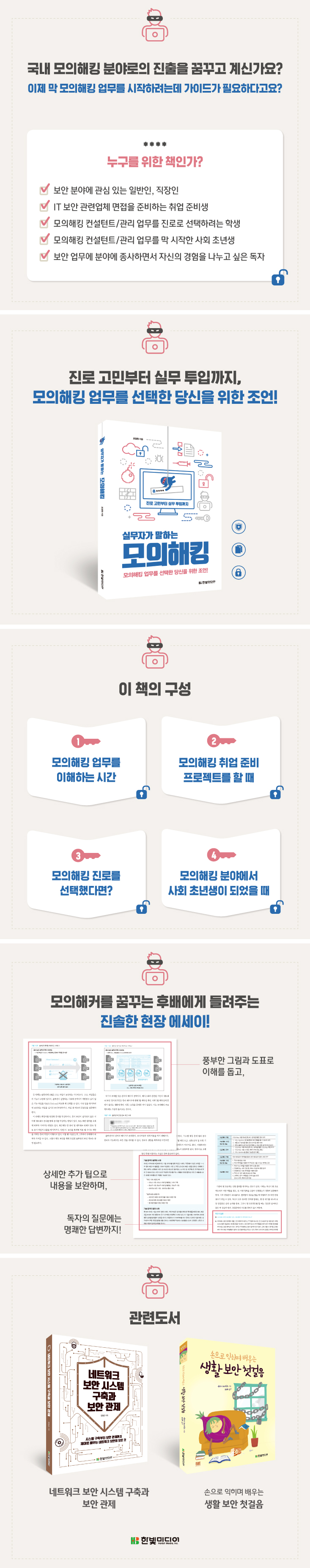¸ðÀÇÇØÅ·À»´Ù·ç´ÂÀü¹®±â¼ú¼´Â¸¹Áö¸¸, ±¹³»¸ðÀÇÇØÅ·ºÐ¾ß·ÎÀÇÁøÃâÀ»²Þ²Ù´ÂÀÔ¹®ÀÚÀǺҾȰú±Ã±ÝÁõÀ»¼Ó½Ã¿øÇϰÔÇØ°áÇØÁÖ´ÂÀÔ¹®¼´Â¾ø´Ù. º¸¾ÈºÐ¾ß¿¡ 10³âÀÌ»óÁ¾»çÇÑÇÊÀÚ´ÂÀÌÃ¥¿¡¼ ¡®¸ðÀÇÇØÅ·¡¯À̶ó´ÂÁÖÁ¦¿¡°üÇÑÀÔ¹®ÀÚÀǰ¢Á¾±Ã±ÝÁõÀ»ÀÚ½ÅÀǰæÇè¿¡ºñÃ߾üÀûÀ¸·ÎÇ®¾îÁØ´Ù. ±â¼úÀûÀγ»¿ëÀºÃÖ¼ÒÈÇϰíÇÊ¿äÇѰæ¿ì¿¡´ÂÃÖ´ëÇѾ˱⽱°ÔÇ®¾î¼³¸íÇß´Ù. ¸ðÀÇÇØÅ·¾÷¹«¸¦Áø·Î·Î¼±ÅÃÇÑÇлýµé°úÀÌÁ¦¸·¾÷¹«¸¦½ÃÀÛÇÑÁ÷¿øµéÀºÀÌÃ¥À»´ÙÀÐ°í³ª¸é¾ÕÀ¸·Î¸ÂÀÌÇÒ¾÷¹«¿¡°üÇØ´õ¸íÈ®ÇÏ°í±¸Ã¼ÀûÀα׸²À»±×·Áº¼¼öÀÖÀ»°ÍÀÌ´Ù.