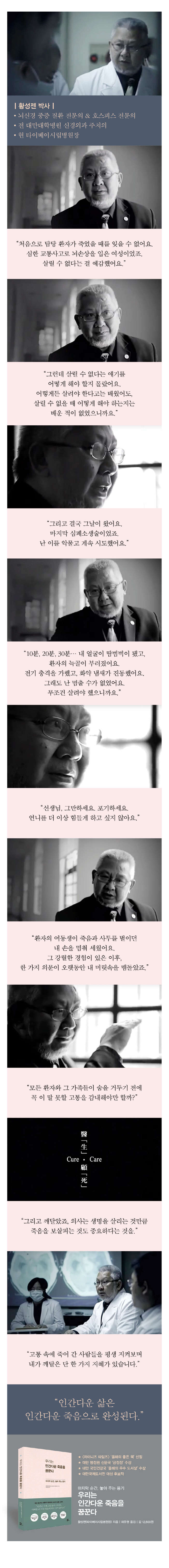 ÀÌ Ã¥¿¡¼ ÀúÀÚ´Â ÁßÁõ ȯÀÚ Àü¹® ÀÇ»ç·Î »ì¸é¼ ¸¸³ »ç¶÷µéÀÇ À̾߱⸦ µé·ÁÁØ´Ù. »ý»çÀÇ °¥¸²±æ¿¡¼ °íÅ뽺·´°Ô À̺°ÇØ¾ß Çß´ø »ç¶÷µéµµ ÀÖ°í, Æò¼Ò ¹Ìó ÇÏÁö ¸øÇÑ ¸»µéÀ» ³ª´©¸ç Æò¿ÂÇÏ°Ô À̺°ÇÑ »ç¶÷µéµµ ÀÖ´Ù. ±×¸®°í ±×µé¿¡°Ô¼ ¹è¿î ÀλýÀÇ ÁöÇý Çϳª¸¦ ÀüÇÑ´Ù. ¹Ù·Î ¡®Àΰ£´Ù¿î Á×À½À» ÁغñÇÏ´Â °ÍÀÌ Àΰ£´Ù¿î »îÀ» ¿Ï¼ºÇÏ´Â °Í¡¯À̶ó´Â »ç½ÇÀÌ´Ù!