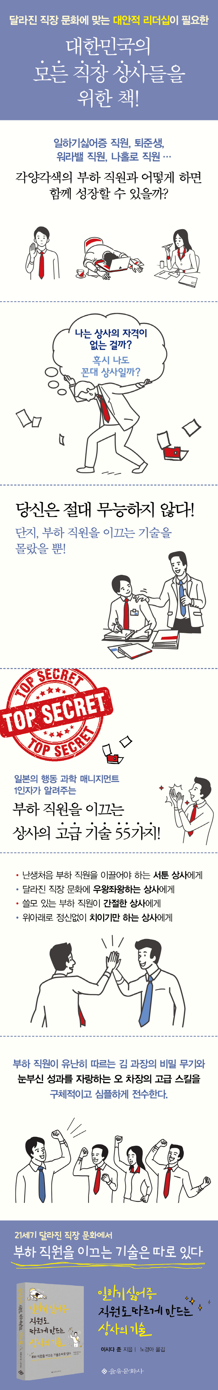 ¾î°¼ À»ç¶÷µéÀº ¡®ºÎÇÏ Á÷¿øÀ» °¡¸£Ä¡´Â ¹æ¹ý¡¯À» Á¦´ë·Î °¡¸£ÃÄ ÁÖÁö ¾ÊÀ»±î? ¾ÈŸ±õ°Ôµµ ºÎÇÏ Á÷¿ø À°¼º¹ýÀ» °¡¸£ÃÄ ÁÖ´Â »ó»ç´Â ¾ø´Ù. ´Ù¸¸ ¡®½Ã´ë°¡ ´Þ¶óÁ³À»¡¯ »ÓÀÌ´Ù. ´ç½ÅÀÇ »ó»ç°¡ Ȱ¾àÇÏ´ø ¶§´Â ¡°¼±¹èÀÇ µîÀ» º¸°í ¹è¿ö¶ó¡±, ¡°²öÁú±â°Ô µû¶óºÙ¾î¶ó¡±¶ó´Â ¸»ÀÌ ´ç¿¬ÇÑ ½Ã´ë¿´´Ù. ´ç½Åµµ ±× °¡¸£Ä§¿¡ µû¶ó ¿½ÉÈ÷ ÀÏÀ» ¹è¿ì°í ³ë·ÂÇØ ¿ÔÀ» °ÍÀÌ´Ù. ±×·¯³ª ¿äÁòÀÇ ÀþÀº ¼¼´ë¿¡°Ô ±×·± ¸»À» Çß´Ù°¡´Â ¹Ýµå½Ã ½ÇÆÐÇÑ´Ù. »ç½Ç ´ç½Å ½º½º·Îµµ ¼¼»óÀÌ ±Þº¯ÇßÀ½À» Àý°¨Çϰí ÀÖÀ» °ÍÀÌ´Ù. Áï, Áö±ÝÀÇ Áß°£ °ü¸®ÀÚµéÀº ¡®³» »ó»ç°¡ »ó½ÄÀ¸·Î ¿©°å´ø ¹æ½Ä¡¯ÀÌ Åë¿ëµÇÁö ¾Ê´Â ȯ°æ¿¡¼ ºÎÇÏ Á÷¿øÀ» À°¼ºÇØ¾ß ÇÏ´Â ºÒÇàÇÑ Ã³Áö¿¡ ³õ¿© ÀÖ´Â ¼ÀÀÌ´Ù. - 16ÂÊ