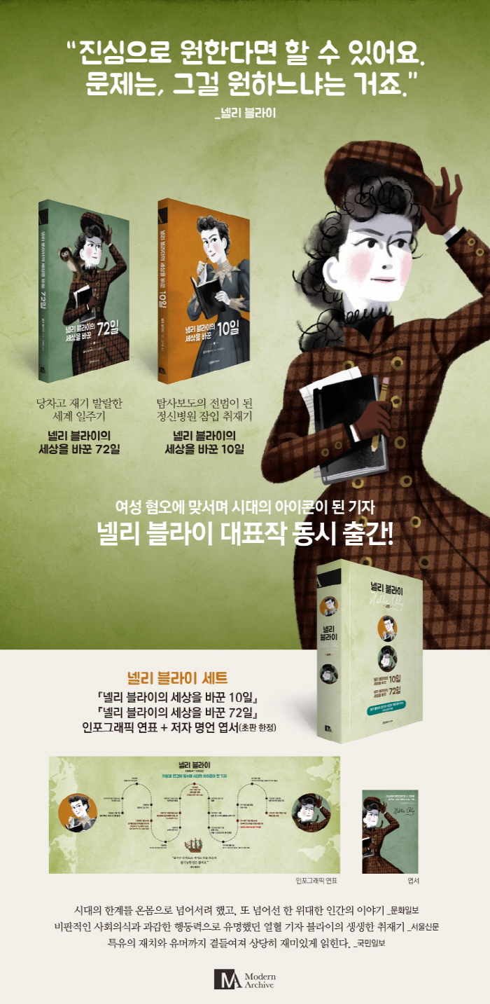 ¿©ÀÚ ±âÀÚ°¡ µå¹® ½ÃÀý Á¤½Åº´¿ø¿¡ ÀáÀÔ ÃëÀçÇØ Ž»çº¸µµÀÇ »õ ÀåÀ» ¿°í, ¼¼°è ÀÏÁÖ·Î ½Ã´ëÀÇ ¾ÆÀÌÄÜÀÌ µÈ ¿Ç÷ ±âÀÚ ³Ú¸® ºí¶óÀÌÀÇ ÃëÀç±â¸¦ Ã¥ µÎ ±Ç¿¡ ´ã¾Ò´Ù.Çѱ¹ µ¶ÀÚ¸¦ À§ÇØ ÀúÀÚÀÇ µå¶ó¸¶Æ½ÇÑ ÀÏ´ë±â¿Í ÀÎÆ÷±×·¡ÇÈ ÇüÅÂÀÇ ÀúÀÚ ¿¬Ç¥¸¦ Ãß°¡ÇßÀ¸¸ç, ³Ú¸® ºí¶óÀÌ ±¸±Û ±â³ä ·Î°í¸¦ ¸¸µç ¾ÆÆ¼½ºÆ® ÄÉÀÌÆ¼ ¿ìÀÇ Ç¥Áö ÀÏ·¯½ºÆ®¸¦ »ç¿ëÇØ ¼ÒÀå °¡Ä¡¸¦ ³ô¿´´Ù.
