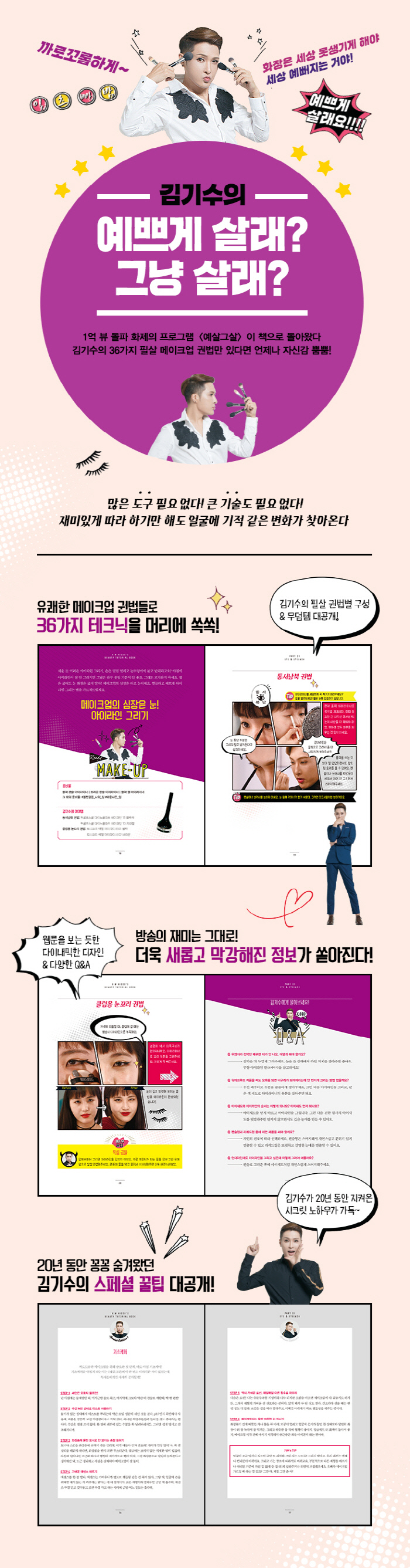°ø°³µÇ´Â ¿¡ÇǼҵ帶´Ù 100¸¸ ºä ÀÌ»ó, ´©Àû Àç»ý ¼ö 1¾ï ºä¸¦ µ¹ÆÄÇϸç Å« ÈÁ¦¸¦ ¸ðÀº SBS ¸ð¹ÙÀÏ ºäƼ ÇÁ·Î±×·¥ ¡´¿¹»ì±×»ì¡µÀÌ ´õ¿í °·ÂÇØÁø Àç¹Ì¿Í Á¤º¸·Î µ¹¾Æ¿Ô´Ù! ¼¼»óÀÇ ¸ðµç ¡®¶Ë¼Õ¡¯À» ¡®±Ý¼Õ¡¯À¸·Î ¸¸µé¾îÁÙ ±è±â¼öÀÇ 36°¡Áö ¸ÞÀÌÅ©¾÷ ²ÜÆÁ°ú ³ëÇϿ찡 ´ã±ä ºäƼ Æ©Å丮¾óºÏ! ¹Ô¹ÔÇÑ ¾ó±¼¿¡ ¸¶¹ý °°Àº ±âÀûÀ» °¡Á®´ÙÁÖ´Â ÄÁÅõ¾î¸µ ¡®»ïµð´Ù½º ±Ç¹ý¡¯, ´«ÀÌ µÎ ¹è Ä¿ º¸ÀÌ´Â ¾ÆÂñÇÑ ¼Ó´«½çÀ» ¸¸µå´Â ¡®337 ºä·¯ ±Ç¹ý¡¯, Àå¹Ôºû »ç¶û½º·¯¿î »´À» ¿¬ÃâÇÏ´Â ºí·¯¼Å ¹Ù¸£±â ¡®¾ÆÀÌÄÚÁ¸ ±Ç¹ý¡¯, µµÀÚ±âó·³ ¸Å²öÇϰí À±±â ÀÖ´Â ÇǺθ¦ ¸¸µå´Â ¡®ÀâÆ¼¹Ú¸ê ±Ç¹ý¡¯ µî ±è±â¼öÀÇ ÇÊ»ì ±Ç¹ýµé°ú, ±âÃÊÄɾî¤ý³ªÀÌÆ®Äɾî¤ý3´ë ºäƼ ½À°ü µî ±×°¡ 20³â µ¿¾È ²Ç²Ç ¼û°Ü¿Ô´ø ½ºÆä¼È ÆÁµéÀÌ ¾Æ³¦¾øÀÌ °ø°³µÈ´Ù. ¡®¸ø»ý±è¡¯À» ¸¶´ÙÇÏÁö ¾Ê°í ¿Â¸öÀ» ´øÁ® °¡¸£Ä¡´Â ±è±â¼öÀÇ ¿Á¤ÀÌ ºú¾î³½ ÄÚ¹ÍÇÔ, ±Í¿©¿î ²¿¿ä(²¿¸¶¿äÁ¤)µé°úÀÇ È¯»óÀûÀÎ ÄɹÌ, À¥Å÷ °°Àº ´ÙÀ̳»¹ÍÇÑ µðÀÚÀÎÀ¸·Î º¸´Â Áñ°Å¿òµµ ´õÇß´Ù. ¸¹Àº µµ±¸ ÇÊ¿ä ¾ø´Ù! Å« ±â¼úµµ ÇÊ¿ä ¾ø´Ù! ÀÌ Ã¥°ú ÇÔ²²¶ó¸é ¾ðÁ¦ ¾îµð¼³ª Àڽۨ »Õ»ÕÇÑ ²¿¿ä·Î °Åµì³´Ù!