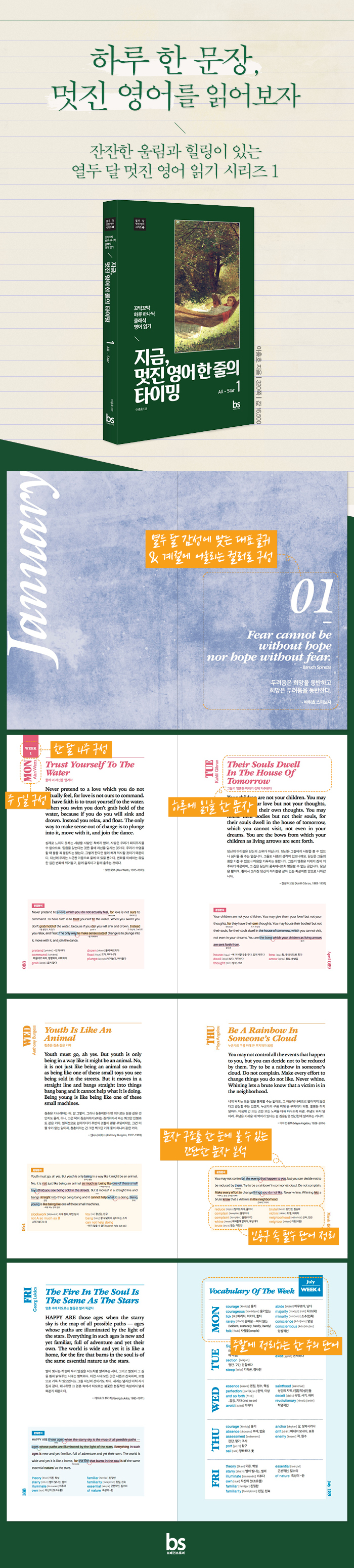 ÇÏ·ç ÇÑ Àå, 10ºÐÀ̸é ÃæºÐÇÏ´Ù. Àá±ñ â¹ÛÀ» º¸¸ç ±âºÐÀüȯ »ï¾Æ µé¿©´Ùº¼ ¼ö ÀÖ´Â ±Û°ú »ý°¢µéÀ» Àç·á·Î »ï¾Ò´Ù. ¸¶À½À» ´Ùµ¶ÀÌ´Â ±ÛÀ» ÀÐÀ¸¸ç ¿µ¾î¿Í Ä£ÇØÁö°í ÀÚ¿¬½º·¹ ¿µ¾î ½Ç·Âµµ ì±æ ¼ö ÀÖµµ·Ï °£´ÜÇÑ ¹®ÀåºÐ¼®°ú ´Ü¾îµµ Á¤¸®Çصξú´Ù. ¸¶À½ÀÌ º¹ÀâÇÒ ¶§, Â÷¸¦ ¸¶½Ç ¶§, Ã¥À» ÀÐ°í ½ÍÀ» ¶§, »õ·Î¿î °èÀýÀÌ ´À²¸Áú ¶§, ÀÌ Ã¥ÀÌ ´Ã ´ç½ÅÀÇ °ç¿¡ ÀÖ±æ ¹Ù¶õ´Ù. ¾ÕÀ¸·Î ³ª¿Ã ¿µÎ ´Þ ¸ÚÁø ¿µ¾î ½Ã¸®Áîµµ ±â´ëÇØ º¸ÀÚ.