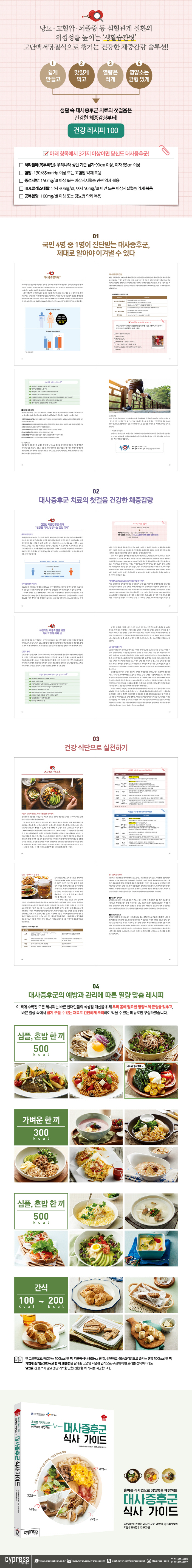 ÀÌ Ã¥Àº ´ë»çÁõÈıº ºÐ¾ßÀÇ ¸íÀÇÀÌÀÚ °³²¼¼ºê¶õ½ºº´¿ø °¡Á¤ÀÇÇаú Àü¹®ÀÇ ÀÌÁö¿ø ±³¼ö¿Í 30¿© ³â°£ ȯÀÚÀÇ ¿µ¾ç°ü¸®¿Í ±³À°À» ÇØ¿Â °³²¼¼ºê¶õ½ºº´¿ø ¿µ¾çÆÀ, ±×¸®°í ¼ö³â °£ ´ëÇüº´¿ø µî¿¡¼ ȯÀÚ Ä¡·á½Ä ¿î¿µÀ» ÇØ¿Â CJÇÁ·¹½Ã¿þÀ̰¡ ÇÔ²² Çß´Ù. ÀÌ Ã¥¿¡´Â Á¡Â÷ ´Ã¾î³ª´Â ´ë»çÁõÈıºÀÇ ¿¹¹æ°ú °ü¸®¸¦ °í¹ÎÇÏ´Â ºÐµéÀ» À§ÇØ ´ë»çÁõÈıº¿¡ ´ëÇÑ ±âº» ÀÌÇØ¿Í ¿µ¾ç°ü¸® ¹× ½Ä´Ü°ü¸®, »ýȰ½À°ü °³¼± µî Àü¹®ÀûÀÌ¸é¼ Ã¼°èÈµÈ ½ÇÁúÀûÀÎ ¼Ö·ç¼ÇÀ» Á¦½ÃÇϰí, Çѱ¹Àε鿡°Ô ¸Â°Ô ¿µ¾ç±ÕÇüÀ» ¸ÂÃç ½Ä»ýȰ °³¼±¿¡ µµ¿òÀ» ÁÙ ¼ö ÀÖ´Â Ä®·Î¸®º° ´Ù¾çÇÑ ·¹½ÃÇÇ 100°³¸¦ °³¹ßÇØ ¼Ò°³Çß´Ù.