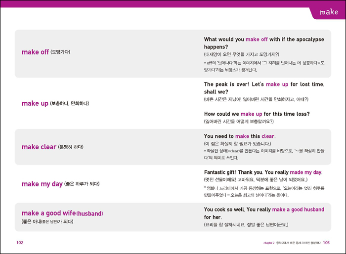 P.20 : ¿ì¸®´Â ÈçÈ÷ ¿µ¾î·Î ¸»ÇÏ·Á°í ÇÒ ¶§ ¿ì¼± ¿ì¸®¸» ¹®ÀåÀ» ÇϳªÇϳª ¿µ¾î·Î ¹ø¿ªÇÏ·Á°í ÇÑ´Ù. ±×·¯¸é ¿ì¸®¸»ÀÇ ¼ö¸¸Å ¿µ¾î ´Ü¾î¸¦ ¿Ü¿ö¾ß ¸»ÇÒ ¼ö ÀÖ´Ù°í »ý°¢ÇÑ´Ù. ÇÏÁö¸¸ ÀÌÁ¦ºÎÅÍ´Â 20°³ µ¿»ç¸¸ öÀúÈ÷ ¸¶½ºÅÍÇØ¼ 'ÀÌ µ¿»ç·Î ¾î¶»°Ô ¸»ÇÒ±î?' ÇÏ°í ¸ÕÀú »ý°¢ÇÏ´Â ½À°üÀ» µéÀ̱⠹ٶõ´Ù.