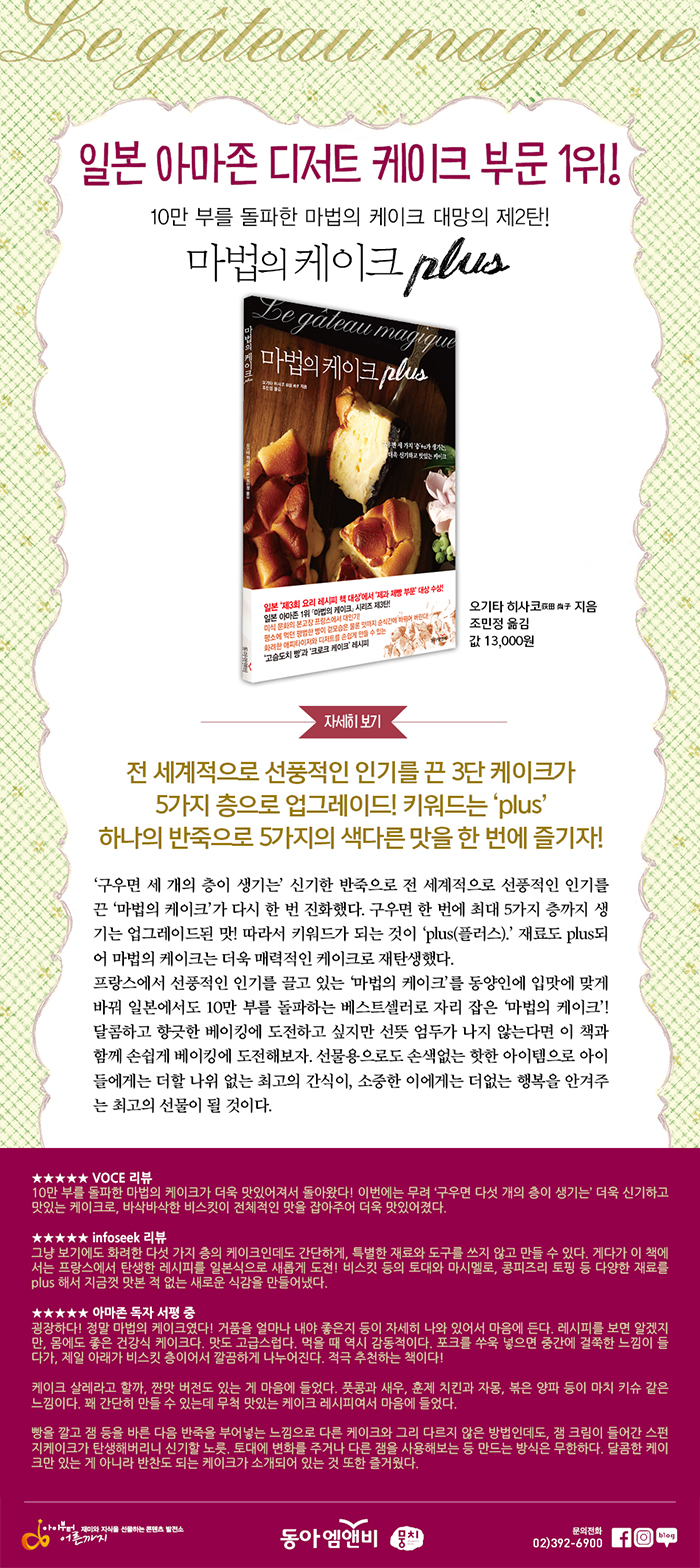 ÇÁ¶û½º¿¡¼ ¼±Ç³ÀûÀÎ Àα⸦ ²ø°í ÀÖ´Â ¡®¸¶¹ýÀÇ ÄÉÀÌÅ©¡¯¸¦ µ¿¾çÀο¡ ÀÔ¸À¿¡ ¸Â°Ô ¹Ù²ã ÀϺ»¿¡¼µµ 10¸¸ ºÎ¸¦ µ¹ÆÄÇÏ´Â º£½ºÆ®¼¿·¯·Î ÀÚ¸® ÀâÀº ¡®¸¶¹ýÀÇ ÄÉÀÌÅ©¡¯! ´ÞÄÞÇϰí Çâ±ßÇÑ º£ÀÌÅ·¿¡ µµÀüÇÏ°í ½ÍÁö¸¸ ¼±¶æ ¾öµÎ°¡ ³ªÁö ¾Ê´Â´Ù¸é ÀÌ Ã¥°ú ÇÔ²² ¼Õ½±°Ô º£ÀÌÅ·¿¡ µµÀüÇØº¸ÀÚ. ¼±¹°¿ëÀ¸·Îµµ ¼Õ»ö¾ø´Â ÇÖÇÑ ¾ÆÀÌÅÛÀ¸·Î ¾ÆÀ̵鿡°Ô´Â ´õÇÒ ³ªÀ§ ¾ø´Â ÃÖ°íÀÇ °£½ÄÀÌ, ¼ÒÁßÇÑ ÀÌ¿¡°Ô´Â ´õ¾ø´Â ÇູÀ» ¾È°ÜÁÖ´Â ÃÖ°íÀÇ ¼±¹°ÀÌ µÉ °ÍÀÌ´Ù.