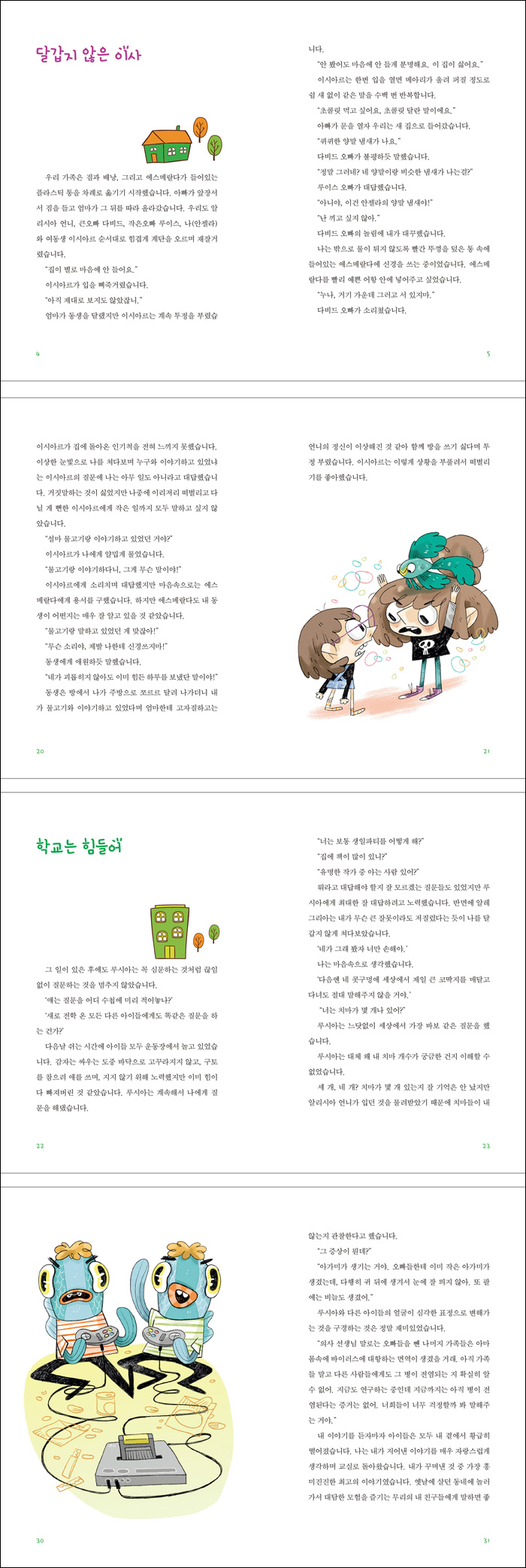 ³ª´Â ·ç½Ã¾Æ¿¡°Ô ´Ù¸¥ ¾ÆÀ̵éÀÇ À̾߱⸦ ´õ µè°í ½Í¾úÁö¸¸ ·ç½Ã¾Æ´Â ¾Æ±î ¸»ÇÑ ´ë·Î ¿ÀÈ÷·Á ³ª¿¡°Ô ÀÌ·±Àú·± Áú¹®À» Çϱ⠽ÃÀÛÇß½À´Ï´Ù.¡°¾îµð¿¡ »ì¾Æ?¡±¡°ÇüÁ¦°¡ ¸î ¸íÀ̾ß?¡±¡°¾ö¸¶, ¾Æºü´Â ¿¬¼¼°¡ ¾î¶»°Ô µÇ¼Å?¡±³ª´Â ·ç½Ã¾Æ¿Í »¡¸® Ä£ÇØÁö±â À§ÇØ ¾ö¸¶°¡ Ç×»ó ¾Ë·Á ÁÖ¾ú´ø ´ë·Î Áú¹®µé¿¡ ¿½ÉÈ÷ ´ë´äÇßÁö¸¸ °ð Áö°Ü¿öÁö±â ½ÃÀÛÇß½À´Ï´Ù. ¡°³×°¡ »ì´ø µ¿³×´Â Àα¸°¡ ¸î ¸íÀ̾ú¾î?¡±¡®ÈÞ, Á¤¸» ±ÍÂú¾Æ! ·ç½Ã¾Æ´Â ¿Ö ÀÌ·¸°Ô ¼ýÀÚ°¡ µé¾î°¡´Â ´ë´äÀ» ÁÁ¾ÆÇÏ´Â °ÅÁö? ³ ¼ýÀÚ °è»êÀ» º°·Î ÁÁ¾ÆÇÏÁö ¾Ê´Â´Ü ¸»À̾ß!¡¯³ª´Â °á±¹ ½É¹®ÇÏ´Â °Í °°Àº Áú¹®µé¿¡ ´ë´äÇϱⰡ Áö·çÇØÁ³½À´Ï´Ù.¡°¿©±â¿¡¼ ¾ó¸¶³ª »ì °Å¾ß?¡±¡°¾Æºü´Â ¾î¶² Ã౸ÆÀÀ» ÀÀ¿øÇϼÅ?¡±·ç½Ã¾Æ°¡ ²÷ÀÓ¾øÀÌ Áú¹®ÇÏ´Â µ¿¾È ¾Ë·¹±×¸®¾Æ°¡ ÄÚ¸¦ Ç®ÀÚ Ä๰ÀÌ Ä౸¸Û ¹ÛÀ¸·Î ±æ°Ô Âß ´Ã¾îÁ® ³ª¿Ô½À´Ï´Ù.¡°Ä๰ÀÌ ´ú ´Û¿´¾î.¡±³»°¡ ¸»Çß½À´Ï´Ù.¡°¾Æ´Ï¾ß, ±×°Ç Ä๰ÀÌ ¾Æ´Ï¾ú¾î.¡±¾Ë·¹±×¸®¾Æ°¡ ¾ó¸¥ Âß ´Ã¾îÁø Ä๰À» ´ÛÀº ÈÄ ´ë´äÇß½À´Ï´Ù. ¾Ë·¹±×¸®¾ÆÀÇ ´ë´äÀº Á¤¸» ¹Ùº¸ °°¾Ò½À´Ï´Ù.¡°Ä๰ÀÌ ¸Â¾Æ, È®½ÇÇÏ´Ù°í.¡±³»°¡ ¸»Çß½À´Ï´Ù.¡°Á¤¸» Ä๰ÀÌ ¾Æ´Ï¾ú´Ù´Ï±î!¡±¾Ë·¹±×¸®¾ÆÀÇ ¾ó±¼ÀÌ Á¡Á¡ »¡°³Á³½À´Ï´Ù.¡°¾Ë·¹±×¸®¾Æ°¡ Ä๰ÀÌ ¾Æ´Ï¶ó¸é ¾Æ´Ñ °ÅÁö.¡±Áú¹® µµÁß ¹æÇظ¦ ¹ÞÀÚ Á¶±Ý Â¥ÁõÀÌ ³ ·ç½Ã¾Æ°¡ ³¢¾îµé¸ç ¸»Çß½À´Ï´Ù.¡°Ä๰ÀÌ ¾Æ´Ï¾ú´Ù°í!¡±³»°¡ ´Ù½Ã ´ë´äÇß½À´Ï´Ù.¡°Ä๰ÀÌ ¸Â´Ù´Ï±î!¡±°á±¹ ÀÌ´Ï¿¡½º°¡ ³¢¾îµé¾î ¾Æ¸¶ Ä๰ÀÌ ¸ÂÀ» °Å¶ó°í ´ë´äÇÏÀÚ ¸ðµç ¾ÆÀ̵éÀÇ ÀÔÀÌ ³î¶ó¿ò¿¡ ½ ¹ú¾îÁ³½À´Ï´Ù. ·ç½Ã¾Æ´Â ÀÌ´Ï¿¡½º¸¦ ¸Å¼·°Ô ÃÄ´Ùº¸¾Ò½À´Ï´Ù.¡°Ä๰À̾úÀ¸¸é ¾î¶§, º°°Íµµ ¾Æ´Ñµ¥.¡±ÀÌ´Ï¿¡½º°¡ ¼Ò½ÉÇÏ°Ô ¸»À» À̾ú½À´Ï´Ù.¡°´©±¸³ª ´Ù Ä๰ÀÌ ÀÖÀݾÆ.¡±Àû¾îµµ ³ª¿Í »ý°¢ÀÌ °°Àº ÀÌ´Ï¿¡½º´Â ¿ØÁö ³ª¶û Àß ¸ÂÀ» °Í °°¾Ò½À´Ï´Ù. ³»°¡ ¹«½ÉÇÑ ¸»Åõ·Î ¾Ë·¹±×¸®¾Æ¿¡°Ô ´«¹°À» ´ÛÀ¸¶ó°í ÇÏÀÚ, ·ç½Ã¾Æ´Â ȳ ¾ó±¼·Î ÃÄ´Ùº¸¸ç ½î¾ÆºÙ¿´½À´Ï´Ù.¡°¾ÆÁ÷µµ ¾È ³¡³µ¾î? ³×°¡ ÀúÁö¸¥ ÇൿÀ» ¾ÆÁ÷µµ ¸ð¸£°Ú´Ï?¡±±× ¼ø°£ ¼ö¾÷ ½ÃÀÛÀ» ¿ï¸®´Â º§ÀÌ ¿ï¸®°í ¸ðµÎ ±³½Ç·Î µ¹¾Æ°¬½À´Ï´Ù. ¿ØÁö Çб³ »ýȰÀÌ Ã¹³¯ºÎÅÍ ¾û¸ÁÀÎ °Í °°´Ù´Â »ý°¢ÀÌ µé¾ú½À´Ï´Ù.