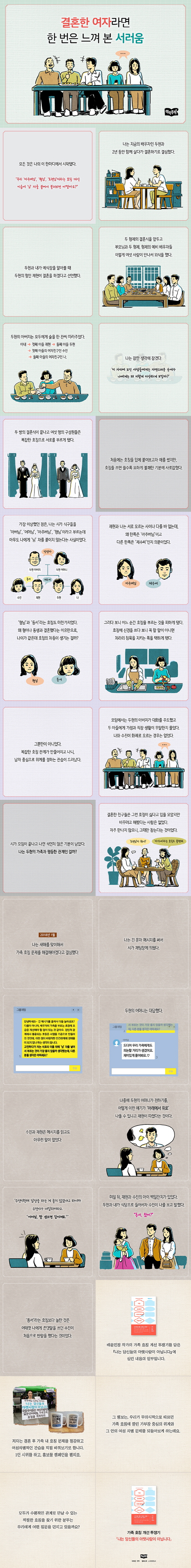 ÀÌ Ã¥ÀÇ ¼µÎ¿¡¼ ÀúÀÚ´Â ½ÃºÎ¸ð¿Í ¿¬¾Ö ½ÃÀýºÎÅÍ ¿À·£ ±â°£ ¾Ë¾Æ¿Ô°í ±×µé¿¡°Ô Ưº°È÷ ¾ÖÁ¤ÀÌ ÀÖ¾úÀ½À» °í¹éÇÑ´Ù. ±×·¯³ª ¡°°áÈ¥ ÈÄ ½Ã°¡ ¸ðÀÓÀÌ ³¡³ª°í ³ µÚ °¡½¿¼Ó¿¡ ³²´Â ¼®¿¬Ä¡ ¾ÊÀº ±âºÐÀ» °ö¾Ã°Ô µÇ¸é¼ °áÈ¥ Àü°ú ´Þ¶óÁø °ÍÀÌ ¹«¾ùÀÎÁö »ý°¢ÇÑ´Ù. °¡Á· ±¸¼º¿øÀÌ ´Ã¾î³ª°í º¹ÀâÇÑ È£Äª °ü°è°¡ ¸¸µé¾îÁö°í ³ª´Ï, ³²ÀÚ¸¦ Áß½ÉÀ¸·Î °¡Á· ±¸¼º¿øµéÀÇ À§°è¸¦ Á¤ÇÏ´Â °ü½ÀÀÌ ¶Ñ·ÇÇÏ°Ô µå·¯³µ´Ù. °áÈ¥ Àü ÀúÀÚ°¡ µÎÇöÀÇ ºÎ¸ð´ÔÀ» ¡®¾î¸Ó´Ô¡¯°ú ¡®¾Æ¹ö´Ô¡¯À̶ó°í ºÎ¸¦ ¶§ ÀåÀ¯À¯¼ÀÇ °ü½À¸¸À» ÀǽÄÇß´Ù¸é, ¡®¾ÆÁÖ¹ö´Ô-Á¦¼ö¾¾¡¯¿Í ¡®Çü´Ô-µ¿¼¡¯ ȣĪ¿¡¼ ´À³¤ °ÍÀº ¹è¿ìÀÚ¿¡°Ô Á¾¼ÓµÈ Á¸Àç·Î Àü¶ôÇß´Ù´Â °¨Á¤ÀÌ´Ù. ½Ã°¡ ¸ðÀÓ¿¡¼ ¿ÀÁ÷ ³²Æí°ú °ü·ÃµÈ À̾߱⸸ ÇÏ°Ô µÇ´Â °æÇâµµ, ³²ÆíÀÇ ³ªÀ̸¦ ±âÁØÀ¸·Î ±¸¼º¿øµé°úÀÇ °ü°è°¡ Á¤ÇØÁö´Â ºÎ°è Áß½ÉÀûÀÎ Áú¼¿Í ¹«°üÇÏÁö ¾Ê´Ù¡±°í ¸»ÇÑ´Ù.(29ÂÊ)