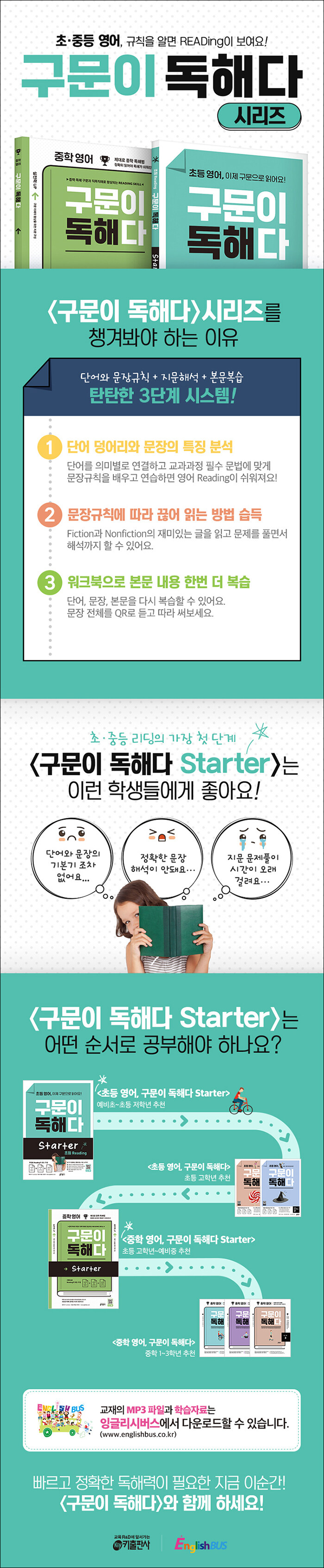 ÁßÇÐ ¿µ¾î µ¶ÇØ¿¡ ²À ÇÊ¿äÇÑ ±¸¹®À¸·Î Áö¹®À¸·Î ±¸¼ºÇÏ¿© Çʼö ´Ü¾î¿Í ±¸¹®¿¡ ´ëÇÑ ÇØ¼®·Â°ú µ¶ÇØ·ÂÀ» ³ôÀÌ´Â ÃÖÀûÀÇ ¸®µù ±³ÀçÀÌ´Ù. ƯÈ÷ Á÷µ¶Á÷ÇØ¸¦ À§ÇÑ ²÷¾î Àбâ(/)¿Í ÀÇ¹Ì ´ÜÀ§º° ¿µ¾îÇ¥ÇöÀ» ÈÆ·ÃÇÒ ¼ö ÀÖ°Ô ÇÏ¿© ´Ü¹® --> Áß¹® --> º¹¹®ÀÇ ´Ü°èº° ÇнÀÀ» ÇÒ ¼ö ÀÖ°Ô Áö¹®À» ±¸¼ºÇÏ¿´´Ù.