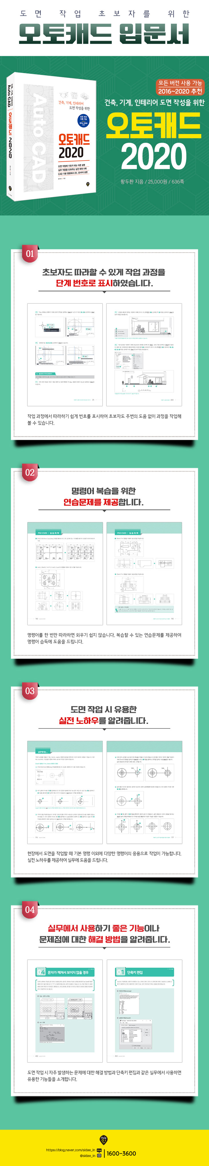 ijµå·Î µµ¸éÀ» ÀÛ¾÷ÇÒ ¶§ ´Ù¾çÇÑ ¸í·ÉÀ» ¾Ë°í ÀÖ¾î¾ß ÀÛ¾÷ÀÌ °¡´ÉÇÕ´Ï´Ù. ÇÏÁö¸¸ óÀ½ ijµå¸¦ ¹è¿ì´Â »ç¶÷µéÀº ¾î·Æ°Ô ´À²¸Áú ¼ö ÀÖ½À´Ï´Ù. ÀÌ Ã¥Àº ÀÌ·± ºÎºÐÀ» ÁÙÀ̰íÀÚ µµÀԺο¡ °£´ÜÇÑ µµ¸é ÀÛ¼ºÀ» ¹«ÀÛÁ¤ µû¶ó ÇØº¸°Ô ±¸¼ºÇÏ¿© µµ¸é ÀÛ¼ºÀÇ È帧À» ÀÌÇØÇÏ°í ¸í·É¿¡ ´ëÇÑ °ÅºÎ°¨À» ÁÙÀÏ ¼ö ÀÖ°Ô ÇÏ¿´½À´Ï´Ù. ÀÌÈÄ µµ¸é ÀÛ¼º¿¡ ±âº»ÀÌ µÇ´Â ¸í·É¾î¸¦ ´Ü°èº°·Î ¹è¿ì°í ÀÀ¿ëÇÏ´Â ¹æ¹ýÀ» Á¦½ÃÇϸç, ¿¹Á¦ ¶ÇÇÑ ½Ç¹«¿¡ Àû¿ëÇÒ ¼ö ÀÖ´Â µµ¸éÀ¸·Î ¼ö·ÏÇÏ¿´½À´Ï´Ù. °¢ ÀåÀÇ ¸¶Áö¸·¿¡´Â ÇöÀå¿¡¼ À¯¿ëÇÏ°Ô »ç¿ëÇÒ ¼ö ÀÖ´Â Á¤º¸µéÀ» Á¦°øÇϰí ÀÖÀ¸¸ç, ¸í·É¾î¸¦ Á» ´õ ºü¸£°Ô ¿Ü¿ï ¼ö ÀÖµµ·Ï ´Ù¾çÇÑ ¿¬½À¹®Á¦¸¦ Á¦°øÇÏ¿© ÀÚ¿¬½º·´°Ô ½ÀµæÇϵµ·Ï ±¸¼ºÇÏ¿´½À´Ï´Ù. ¶ÇÇÑ 3D µµ¸éÀ» Á¦ÀÛÇÒ ¼ö ÀÖ´Â 3D ¸í·É°ú µµ¸éÀ» Ãâ·ÂÇÏ´Â ´Ù¾çÇÑ ¹æ¹ý, ÀÛ¾÷ ½Ã ¹ß»ýÇÒ ¼ö ÀÖ´Â ¹®Á¦Á¡¿¡ ´ëÇÑ ÇØ°á ¹æ¹ýµµ ¼ö·ÏÇÏ¿´½À´Ï´Ù.