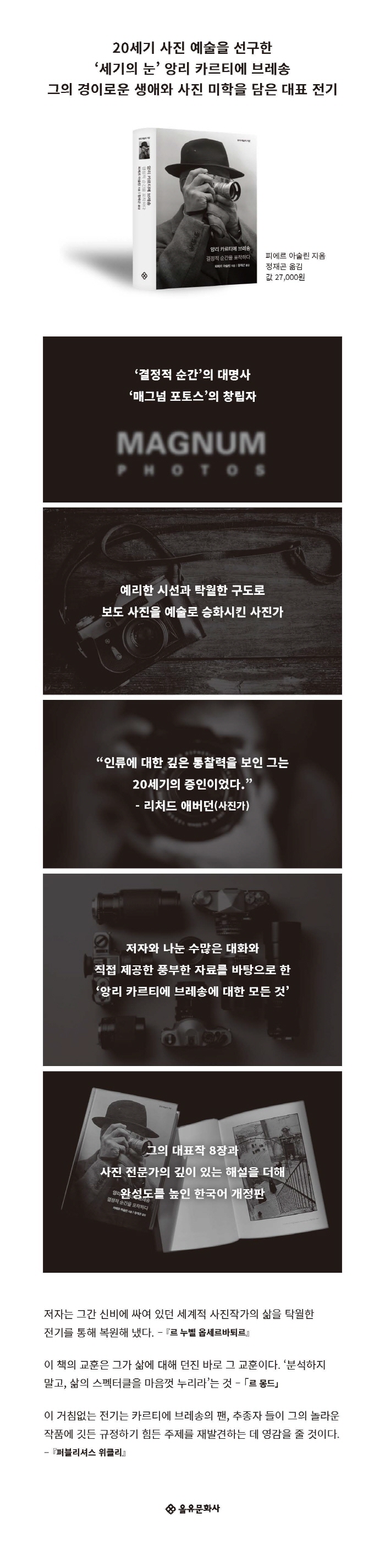 ±×¶§ ³ª´Â Ä«¸£Æ¼¿¡ ºê·¹¼Û°ú Çì¾îÁö¸é¼ ¾ðÁ¨°¡ ±×¿¡ °üÇÑ ±â»ç°¡ ¾Æ´Ï¶ó ÇÑ ±ÇÀÇ Ã¥À» ½á¾ß°Ú´Ù°í »ý°¢Çß´Ù. ÇöÁ¸ÇÏ´Â À§´ëÇÑ »çÁøÀÛ°¡ÀÌÀÚ »õ·ÎÀÌ È°µ¿À» Àç°³ÇÑ µ¥»ý Ȱ¡, Àå°Å¸® ¿©ÇàÀ» ¸¶´Ù¾Ê´Â ¸®Æ÷ÅÍ, Çö½Ã´ë¸¦ Áõ¾ðÇÏ´Â Àι°, ¿µ¿øÇÑ Å»ÁÖº´, Áý¿äÇÑ ±âÇÏÇÐÀÚ, ¿¼ºÀûÀÎ ºÒ±³ ½ÅÀÚ, û±³µµÀû ¹«Á¤ºÎÁÖÀÇÀÚ, °³ÀüÀÇ Á¤ÀÌ ÀüÇô º¸ÀÌÁö ¾Ê´Â °ñ¼ö ÃÊÇö½ÇÁÖÀÇÀÚ, À̹ÌÁöÀÇ ½Ã´ë¸¦ »ó¡ÇÏ´Â Àι° µûÀ§°¡ ¾Æ´Ï¶ó, ±×Àú ÀÌ ¸ðµç ¸ð½À µÚ¿¡ ¼û¾î ÀÖÀ¸¸é¼ ¸ðµç °ÍÀ» ¾Æ¿ì¸¦ ¼ö ÀÖ´Â Àι°À» ºÙÀâ¾Æ º¸°í ½Í¾ú´Ù. ÇÑ ¼¼±â¸¦ »ì¾Æ¿Ô´ø, ±×Àú ÇÑ »ç¶÷ÀÇ ÇÁ¶û½ºÀÎÀ». ¾î´À ½ÃÀÎÀÌ ¸»Çß´ø °Íó·³ Áß¿äÇÑ °ÍÀº Àΰ£ ÀÚüÀ̴ϱî. - 63~64ÂÊ
