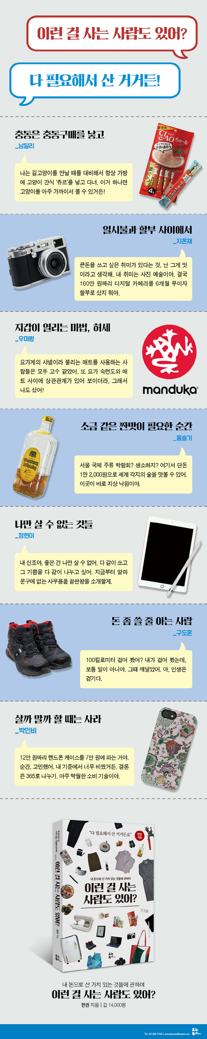 ±×·¸°Ô °¢ÀÚÀÇ ÇູÀ» Á¶±Ý¾¿ °øÀ¯ÇØ ¿Â »ç¶÷µéÀÇ ¼ÒºñÇÏ´Â ¸¶À½À» ÀÌ Ã¥¿¡ ´ã¾Ò´Ù. ÀÌ Ã¥Àº ³»°¡ ÀÌ¹Ì ¼ÒºñÇ߰ųª ¾ÕÀ¸·Î ¼ÒºñÇÒ ¹°°Çµé¿¡ °üÇÑ À̾߱â´Ù. ´©±º°¡´Â ¡°ÀÌ·± °É »ç´Â »ç¶÷µµ ÀÖ¾î?¡±¶ó¸ç °í°³¸¦ °¼¿ì¶×°Å¸± ¼ö ÀÖÁö¸¸, ´©±º°¡´Â °ÝÇÑ µ¿Áö¾Ö¸¦ ´À³¥ °ÍÀÌ´Ù. ŸÀÎÀÇ ½Ã¼±ÀÌ ¾î¶»µç ´Ù ÇÊ¿äÇØ¼ »ê °ÍÀÌ ¾Æ´Ï°Ú´Â°¡. ´ÜÁö Áö±Ý ´çÀå ÇÊ¿äÇÏÁö ¾Ê¾Æ¼ »çÁö ¾Ê¾ÒÀ» »Ó.