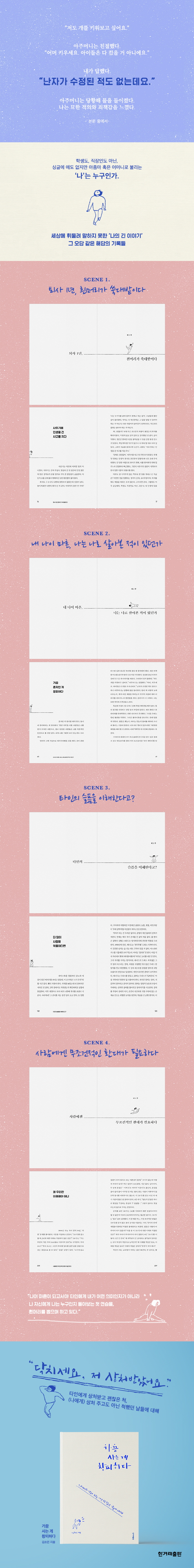 Àΰ£ º»¿¬ÀÇ Àº¹ÐÇÏ°í ³»¹ÐÇÑ °¨Á¤¿¡ ´ëÇÑ ±íÀº »çÀ¯, ¹®Àå »çÀÌ·Î ³ì¾Æµç È£ÄèÇÔ, ½Å¼±µµ ¹é ÆÛ¼¾Æ®·Î ÇØµ¿µÇ´Â ¡®³¸¼±¡¯ À¯¸ÓÀÇ Äè°¨À» ¼±»çÇÏ´Â ±è¼Ò¹Î ÀÛ°¡ÀÇ ½Å°£ ¡¶°¡²û »ç´Â °Ô âÇÇÇÏ´Ù¡·°¡ Ãâ°£µÆ´Ù. Ã¥Àº 40´ë ¿©¼º ÀÛ°¡°¡ Åð»ç ÀÌÈÄ ³ª¸¦, ÁÖº¯À», Á¾·¡¿£ ¼¼»óÀ» ÀÌÇØÇÏ·Á´Â ½Ãµµ·Î½á ¡®³ª¡¯¶ó´Â ÇÑ Àΰ£À» ´Ù½Ã Ű¿ì¸ç ½á ³»·Á°£ ¿¡¼¼ÀÌ´Ù. ¹«¾ùº¸´Ù ½Ì±Û ¿©¼ºÀÌ ¿Â ÈûÀ» ´ÙÇØ ÀÚ±â ÀÚ½ÅÀ¸·Î »ì¾Æ³²±â À§ÇØ ¾Ö¾´ ±â·ÏÀÌ´Ù. ÀÛ°¡´Â ¡®¿Õ³â¿¡¡¯ ¡´ÇѰܷ¹½Å¹®¡µ¿¡¼ 13³â µ¿¾È ±âÀÚ »ýȰÀ» Çß°í ÀÌÈÄ ±¹Á¦±¸È£´Üü ¡®¼¼À̺ê´õÄ¥µå·±¡¯¿¡¼ ÀÏÇß´Ù. ÇѸ¶µð·Î ²Ï Àß ³ª°¬´Ù. Áö±ÝÀº? 40´ë, ¿©¼º, ¹é¼ö, ½Ì±Û. ³× °¡Áö ŸÀÌÆ²ÀÌ ºÙÀº Ä®·³´Ï½ºÆ®´Ù. ÇÑ °¡Áöµµ Èûµçµ¥, ³× °¡Áö´Ù. ±×·¡¼ ¡®»ç´Â °Ô âÇÇÇÑ °É±î?¡¯ ¾Æ´Ï¸é¼µµ ¸Â´Ù. ±×°Ç ¼¼»óÀÌ ºÎ¿©ÇÑ ³× °¡Áö ŸÀÌÆ²ÀÌ ÀÛ°¡¿¡°Õ »óóÀÌÀÚ µ¿½Ã¿¡ ¼¼»ó¿¡ ÈֵѷÁ ½º½º·Î ºÎ¿©ÇÑ Å¸ÀÌÆ²À̱⠶§¹®ÀÌ´Ù. ÀÌ Ã¥Àº ±× ŸÀÌÆ²À» ´Ù½Ã °ÅµÎ¾î ¡®ÁøÂ¥ ³ªÀÇ ±ä À̾߱⡯¸¦ ½á ³»·Á°¡·Á´Â ÀÛ°¡ÀÇ ¾î·Á¿î È£ÈíÀÌÀÚ ³»Àû °¥µîÀÇ ÁÂÇ¥´Ù. ÀÛ°¡´Â ¡®40´ë ½Ì±Û ¹é¼ö ¿©¼º¡¯ÀÌ °Þ°Ô µÇ´Â ÀÏ»óÀ» ÇØÇÐÀûÀ¸·Î Ç®¾î³»¸ç ¿ì¸®°¡ ¿Ö ¡®³ª¡¯·Î ¹öƾ ä ŸÀÎÀ» ÀÌÇØÇÏ°í »çȸ¸¦ ¹Ù¶óº¸´Â È®ÀåµÈ ½Ã¼±À» °®´Â °Ô Áß¿äÇÑÁö »ý°¢ÇÏ°Ô ÇÑ´Ù. ½Å¹®±âÀÚ ½ÃÀý ÀÍÈù ³¯Ä«·Î¿î °üÂû·ÂÀº 40´ë, ½Ì±Û, ¹é¼ö, ¿©¼ºÀÌ µÇ°í ³ª´Ï ´õ¿í ºûÀ» ¹ßÇÑ´Ù. Á¤»óÀΠôÇÏ´Â ºÒÇùÈÀ½ÀÇ ÀÏ»óÀÌ, ÀÌÁ¦¾ß º¸ÀδÙ. ±× ÀÏ»ó ¼Ó °³ÀÎÀÇ À̾߱â´Â ³ªÀÇ À̾߱âÀÌÀÚ ¾î¼¸é ´ç½ÅÀÇ À̾߱â´Ù.