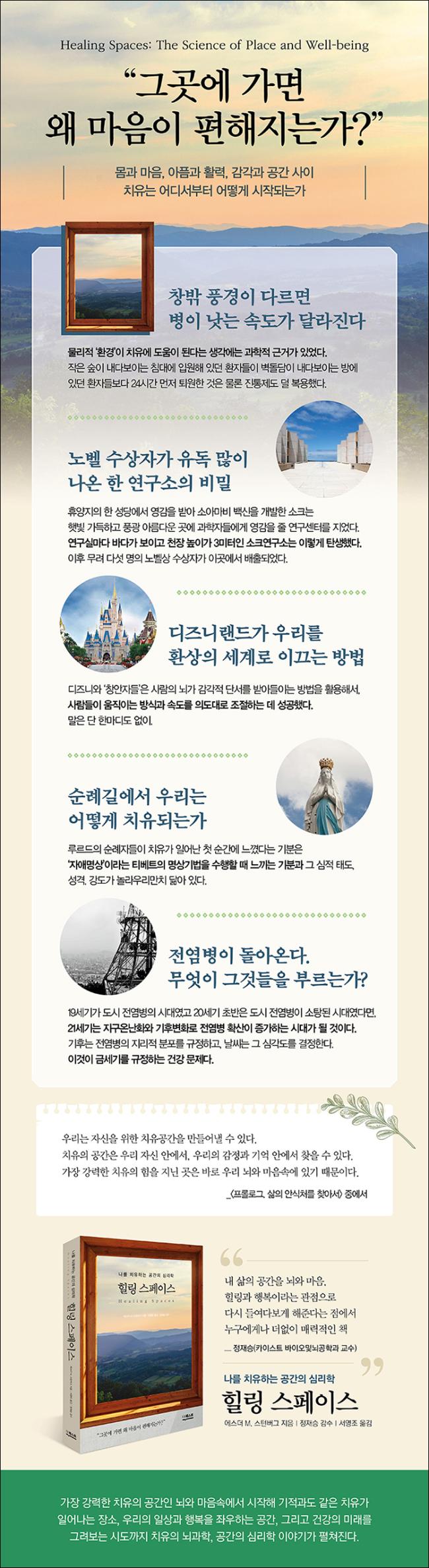Àå¼Ò¿¡ ´ëÇÑ ¿ì¸®ÀÇ °¨°¢Àº ¿ì¸®°¡ º¸°í ´À³¢°í ³¿»õ ¸Ã°í µè´Â °Í, Áï ¿ì¸®ÀÇ ¸ðµç °¨°¢À» °ÅÃÄ ¸¸µé¾îÁø´Ù. ¿ì¸®°¡ ±× Àå¼Ò¸¦ ÇÑ ¹ø °æÇèÇϰí, ´Ù½Ã °æÇèÇÒ ¶§¸¶´Ù ¿ì¸®ÀÇ ±â¾ï ¼Ó¿¡¼ ¸¸µé¾îÁö°í, ´Ù½Ã ¸¸µé¾îÁø´Ù. (¡¦¡¦) ¿ì¸®´Â ȯ°æÀ» Áý¾î»ïŰ°í ÆÄ±«Çϸç, °á°úÀûÀ¸·Î ¿ì¸® ½º½º·Î¸¦ ÆÄ±«ÇÏ´Â Àå¼ÒµéÀ» ¸¸µé¾î³¾ ¼ö ÀÖ´Ù. ±× Á¤¹Ý´ëµµ °¡´ÉÇÏ´Ù. ¿ì¸®´Â ȯ°æ°ú Á¶È¸¦ ÀÌ·ç°í °Ç°À» ÁöŰ´Â µ¥ µµ¿òÀ» ÁÖ´Â Àå¼ÒµéÀ» ¸¸µé¾î³¾ ¼ö ÀÖ´Ù.