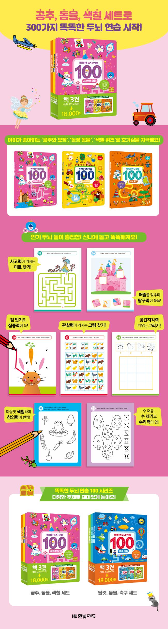 ¡®¶È¶ÈÇÑ µÎ³ú ¿¬½À 100¡¯Àº ¾ÆÀ̵éÀÇ ÁÁ¾ÆÇÏ´Â ÁÖÁ¦º°·Î 100°¡Áö Ȱµ¿À» ¸ð¾Æ, ´õ¿í Áñ°Ì°Ô ÁýÁßÇÒ ¼ö ÀÖ´Â µÎ³ú°è¹ß ¿öÅ©ºÏÀÌ¿¡¿ä. ¡®Å»°Í ¼¼»ó¡¯ ¡®µ¿¹° Ä£±¸¡¯ ¡®³óÀå µ¿¹°¡¯ ¡®°øÁÖ¿Í ¿äÁ¤¡¯ ¡®Ã౸ ´ëÀ塯 ¡®»öÄ¥ ÄûÁÀÇ 6°¡Áö ÁÖÁ¦°¡ ¾ÆÀ̵éÀÇ Èï¹Ì¿Í È£±â½ÉÀ» ´õ¿í ÀÚ±ØÇÏÁö¿ä. ¿ì¸® ¾ÆÀ̰¡ ÁÁ¾ÆÇÏ´Â ÁÖÁ¦¸¦ ½ï½ï °ñ¶ó¼ ´õ¿í Àç¹ÌÀÖ°Ô ¶È¶ÈÇØÁ®¿ä!