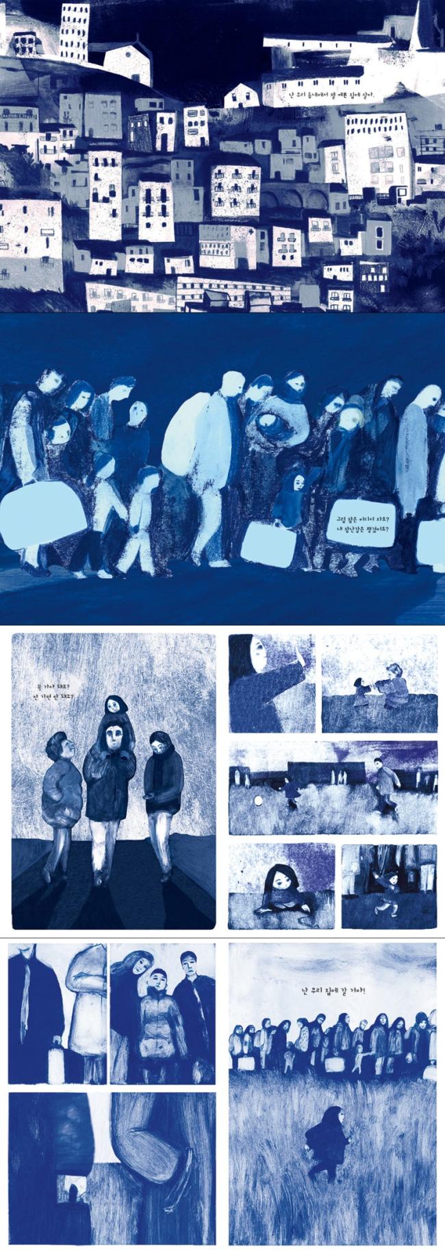 ¾È³ª´Â ¸ðµç °ÍÀ» ÀÒ°í ¾Æ¹«°Íµµ ÇÒ ¼ö ¾ø´Â ¾ÆÀÌÀÇ ½½Çİú ¹«·Â°¨À» Ç¥ÇöÇϱâ À§ÇØ ½ÃÁ¾Àϰü ¾îµÎ¿î ÆÄ¶õ»öÀ» »ç¿ëÇØ ±×¸²À» ±×·È°í, Å×»ç´Â ¾î¸°¾ÆÀÌÀÇ ¸ñ¼Ò¸®¸¦ ºô·Á ³¹ÎµéÀÇ °íµÈ ¿©Á¤À» ´ã´ãÈ÷ ÀüÇÕ´Ï´Ù.