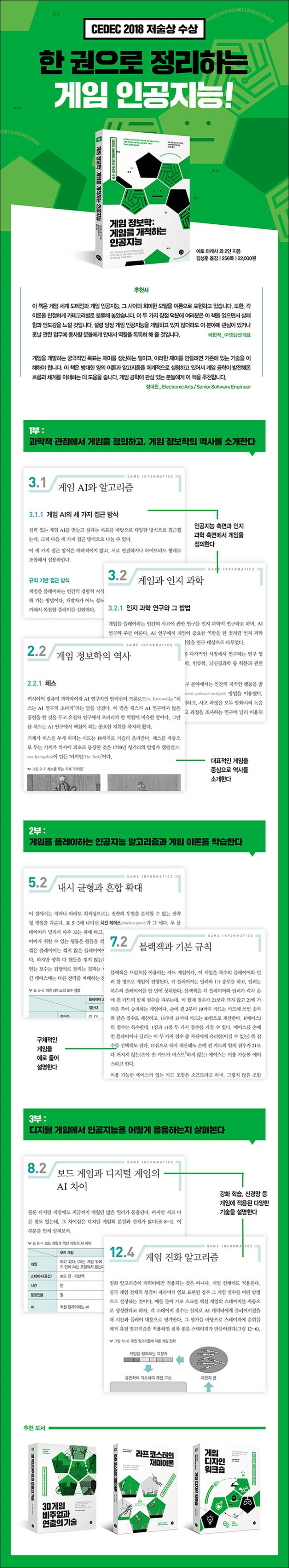 ÀÌ Ã¥Àº °ÔÀÓÀÌ °¡Áø Àǹ̸¦ °ÔÀÓÀÇ ¿ª»ç¿Í Á¤ÀÇ¿¡¼ºÎÅÍ ´Ù½Ã »ìÇǰí, °ÔÀÓÀÇ ÀÎÁö °úÇÐÀûÀÎ Ãø¸é°ú °ÔÀÓÀÇ Á¤º¸ °úÇÐÀûÀÎ Ãø¸é ±×¸®°í µðÁöÅÐ °ÔÀÓÀ¸·ÎÀÇ ÀÀ¿ë±îÁö °³°ýÀûÀ¸·Î ¼³¸íÇÕ´Ï´Ù. ÀúÀÚµéÀº ÀÌ·± ¿¬±¸¸¦ ÅëÇØ °ÔÀÓ Àúº¯¿¡ ÀÖ´Â °øÅëÁ¡À» ¹àÇô °³º° °ÔÀÓÀÇ Â÷À̸¦ µå·¯³»°í, Ư¡À» ã¾Æ³»¾î °ÔÀÓ¿¡¼ »ç¿ëÇÑ ±â¼úÀ» ¼³¸íÇϰíÀÚ ½ÃµµÇß½À´Ï´Ù. °Ô´Ù°¡ Ž»ö ÀÌ·ÐÀ̳ª ¸Ó½Å·¯´×, ½Å°æ¸Áó·³ ±â¼úÀûÀÎ ³»¿ë»Ó¸¸ ¾Æ´Ï¶ó Á˼öÀÇ µô·¹¸¶, ³»½Ã ±ÕÇü µî °ÔÀÓ ÀÌ·ÐÀÇ ±âÃʵµ ÇÔ²² ´Ù·ç°í ÀÖ¾î Áö·çÇÏÁö ¾Ê°Ô ÀÐÀ» ¼ö ÀÖ¾ú½À´Ï´Ù.