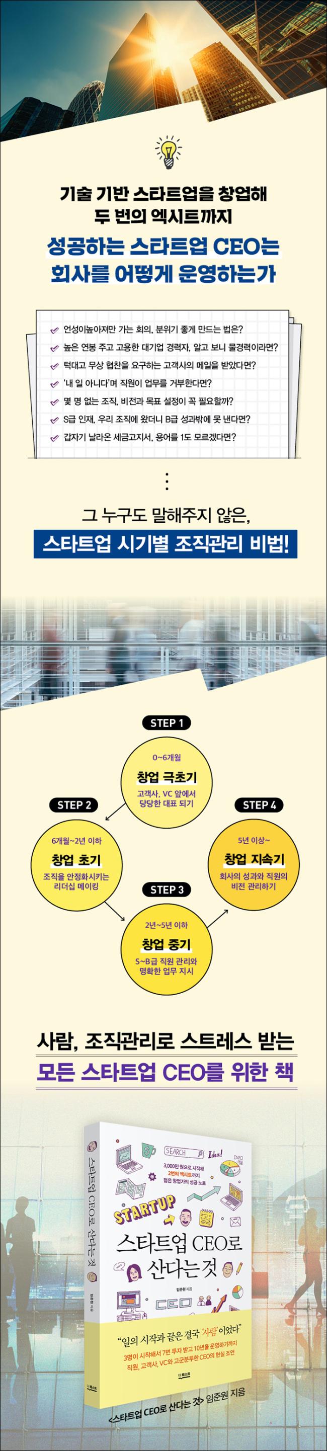 ¼º°øÇÏ´Â ½ºÅ¸Æ®¾÷Àº ¾ÆÀ̵ð¾î³ª ¾ÆÀÌÅÛ¸¸À¸·Î ÀÌ·ïÁöÁö ¾Ê´Â´Ù. ¹Ýµå½Ã Á¶Á÷ ¿î¿µ¿¡ °üÇÑ ¸íÈ®ÇÑ ±ÔÄ¢ÀÌ ÀÖ¾î¾ß ÇÑ´Ù. Çö±Ý Á¶´Þ ¹æ¹ýºÎÅÍ °í°´»ç ´ëÀÀ, º¹¸®ÈÄ»ý, ¼º°ú °ü¸® ü°è µîÀ» Á¤Çسõ¾Æ¾ß Á¶Á÷ÀÌ ¹° È帣µí Èê·¯°£´Ù. ¡¶½ºÅ¸Æ®¾÷ CEO·Î »ê´Ù´Â °Í¡·Àº 3,000¸¸ ¿øÀÇ ÀÚº»±ÝÀ» °¡Áö°í ½ºÅ¸Æ®¾÷À» ½ÃÀÛÇØ µÎ ¹øÀÇ ¿¢½ÃÆ®±îÁö °æÇèÇÑ Ã¢¾÷°¡ÀÇ ²Ä²ÄÇÑ Çö½Ç±â·ÏÀ» ´ã°í ÀÖ´Ù. ¸·¿¬ÇÑ ²Þ°ú Èñ¸ÁÀ» À̾߱âÇÏ´Â °ÍÀÌ ¾Æ´Ï¶ó Çö½Ç¿¡ ´Ü´ÜÇÏ°Ô ¹ßÀ» µó°í ¾î¶»°Ô ¹®Á¦¸¦ ÇØ°áÇÏ°í »ç¶÷À» °ü¸®ÇÏ¸ç ¸ÅÃâÀ» ÀÏÀ¸Å³ °ÍÀÎÁö¿¡ °üÇÑ ±¸Ã¼ÀûÀÌ°í ½ÇÁúÀûÀÎ ³»¿ëÀ» Á¦½ÃÇÑ´Ù.