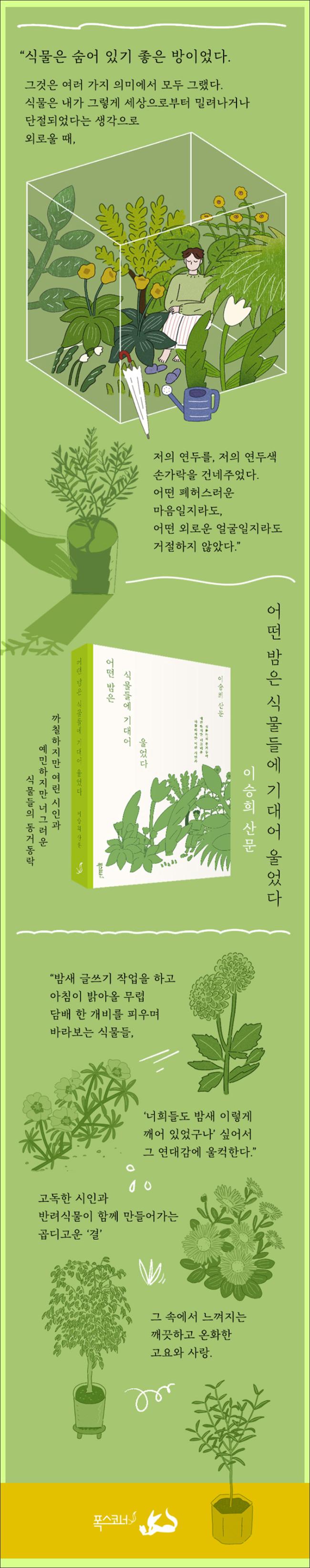 ±×·± ³¯ ÀÛÀº Ⱥп¡ ´ã±ä ´õ ÀÛÀº ½Ä¹° Çϳª¸¦ °¡½¿¿¡ ¾È°í µ¹¾Æ¿Ô´Ù. ¸î¸îÀº Á×¾ú°í, ¸î¸îÀº ¾ÆÁ÷ ³» °ç¿¡ ³²¾Ò´Ù. ³» ±â¾ï ¼ÓÀÇ ½Ä¹°µéÀº ´ëºÎºÐ ±×·¸°Ô ³» »ýÀÇ ±â·Ï°ú °°´Ù. ÇϳªÀÇ ½Ä¹° ¼Ó¿¡´Â ±× ½Ä¹°À» µ¥·Á¿Ã ¶§ÀÇ ¸¶À½°ú µ¥·Á¿À·Á°í ¸¶À½¸Ô°Ô ÇÑ ¾î¶² »ç¿¬µéÀÌ ÀÖ´Ù. ±×·¡¼ ³»°¡ Ű¿ì´Â ¸ðµç ½Ä¹°µéÀº ´ëºÎºÐ ¾î´À ³¯ÀÇ ³» ¸¶À½µéÀÌ´Ù. _6ÂÊ