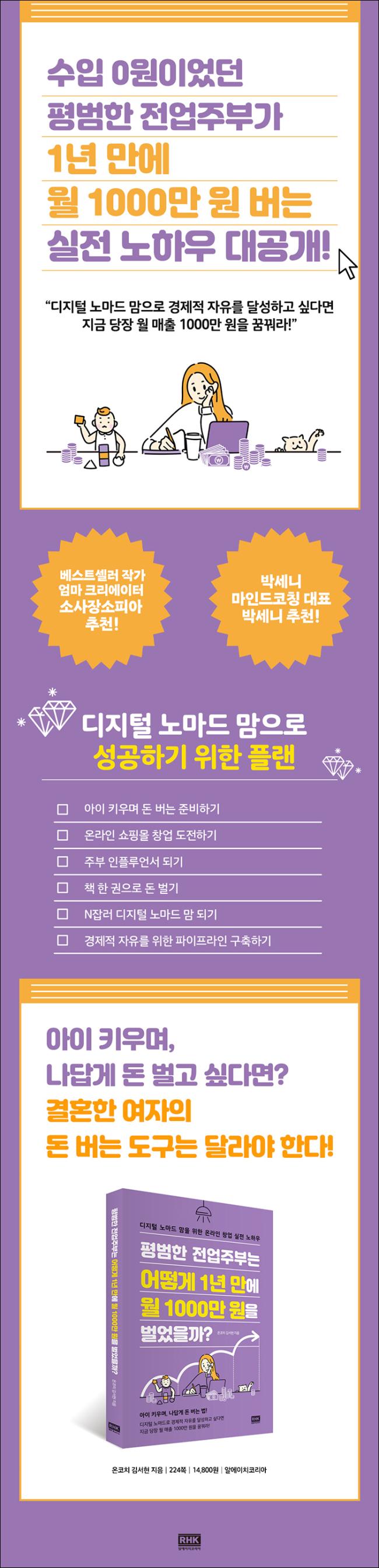 ±×·¸°Ô ½ÃÀÛÇÑ Ã¢¾÷À¸·Î ³ª´Â ÇÑ ´Þ¿¡ 1,000¸¸ ¿øÀ» ³Ñ°Ô ¹ú¾ú´Ù. ¾ÆÀ̸¦ Ű¿ì¸ç, È¥ÀÚ ¿Â¶óÀÎ ¼îÇθôÀ» ¿î¿µÇؼ 1³â ¸¸¿¡ ÀÌ·é ¼º°ú¿´´Ù. À̰ÍÀÌ °æÁ¦Àû ÀÚÀ¯¸¦ ã¾Æ°¡´Â ¿©ÇàÀÇ Ã¹ ½ÃÀÛÁ¡À̾úÀ¸¸ç, ³»°¡ ¾ö¸¶°¡ µÅ¼ ºÎÀÚ ½ºÀ§Ä¡¸¦ ONÀ¸·Î ÄÑ°Ô µÈ °è±â°¡ µÆ´Ù.---p.7