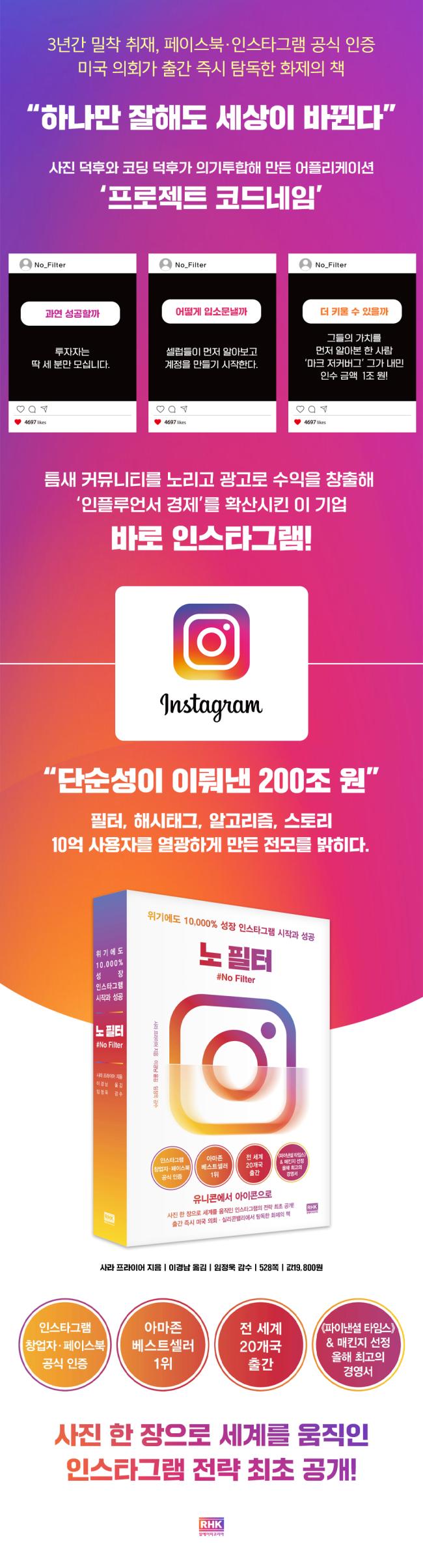 ÆäÀ̽ººÏ, ÀνºÅ¸±×·¥, ½º³Àê ±×¸®°í Æ®À§ÅͰ¡ ¹Ì·¡ »çȸ¿¡ ¹ÌÄ¥ ¿µÇâ¿¡ °üÇÑ ±â»ç¸¦ ÁÖ·Î ¾²°í ÀÖÀ¸¸ç, ¿©·¯ Â÷·Ê º¸µµ °ü·Ã »óÀ» ¹Þ¾Ò´Ù. ¡¶³ë ÇÊÅÍ¡·´Â ±×³àÀÇ Ã¹ Àú¼·Î, ÀÌ Ã¥À» ¾²±â À§ÇØ 3³â°£ ÀνºÅ¸±×·¥ÀÇ µÎ â¾÷ÀÚ, Äɺó ½Ã½ºÆ®·Ò°ú ¸¶ÀÌÅ© Å©¸®°Å¸¦ ºñ·ÔÇØ ÀνºÅ¸±×·¥ ¹× ÆäÀ̽ººÏ °ü°èÀÚµéÀ» °Åµì ½ÉÃþ ÃëÀçÇß´Ù. ¶Ç ÀνºÅ¸±×·¥ °ü·Ã ¸ðµç Á¤º¸¸¦ °¡´ÉÇÑ ÇÑ °´°üÀûÀ¸·Î Ã¥¿¡ ´ã°íÀÚ ½Ç¸®Äܹ븮ÀÇ ÅõÀÚÀÚ ¹× ±â¾÷°¡ µé°ú »ç½Ç È®ÀÎ ÀÛ¾÷À» ¼öÂ÷·Ê °ÅÃÆ´Ù.