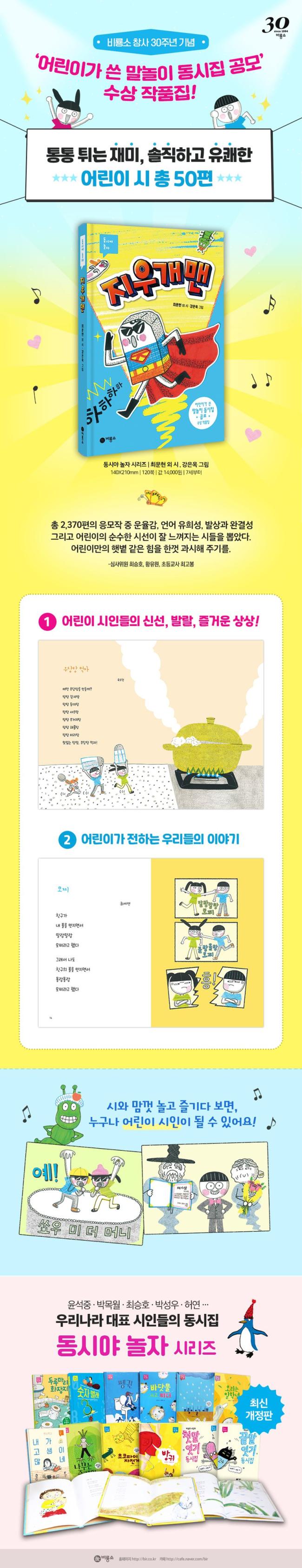 ±ÔÄ¢¿¡ ¾ô¸ÅÀÌÁö ¾ÊÀº ½Å¼±ÇÏ°íµµ ¼ÖÁ÷ÇÑ Ç¥Çö, ¹ß¶öÇÏ°Ô ¹ß»êµÇ´Â »ó»óÀÌ µë»Ò ´ã±ä ¾î¸°À̵éÀÇ ½Ã, ÃÑ 50ÆíÀÌ ´ã±ä µ¿½ÃÁýÀÌ´Ù. ÃʵîÇб³ Àü ÇгâÀÇ ½ÃµéÀÌ °í·ç ´ã°Ü ÀÖ¾î Çг⿡ ±¸¾Ö¹ÞÁö ¾Ê°í ¸ðµÎ°¡ Áñ°Ì°Ô ÀÐÀ» ¼ö ÀÖ´Ù. ¸»ÀÇ ¿îÀ², ¾ð¾î°¡ ¸¸µé¾î ³½ ¿ì¿¬ÀÇ Àç¹Ì, µ¶Æ¯ÇÑ ½Ã¼± µîÀÌ ¾î¸°À̸¸ÀÌ ´ãÀ» ¼ö ÀÖ´Â ¼¼°è·Î °¡µæÇÏ´Ù. ¾î¸°À̰¡ ¾´ µ¿½ÃÀÇ ÀÚÀ¯·Î¿ò°ú Èï°Ü¿òÀº ÁøÁ¤ÇÑ µ¿½ÃÀÇ ¼¼°è¸¦ ¿³º¼ ¼ö ÀÖ¾î ´õ¿í Àǹ̰¡ Å©´Ù.